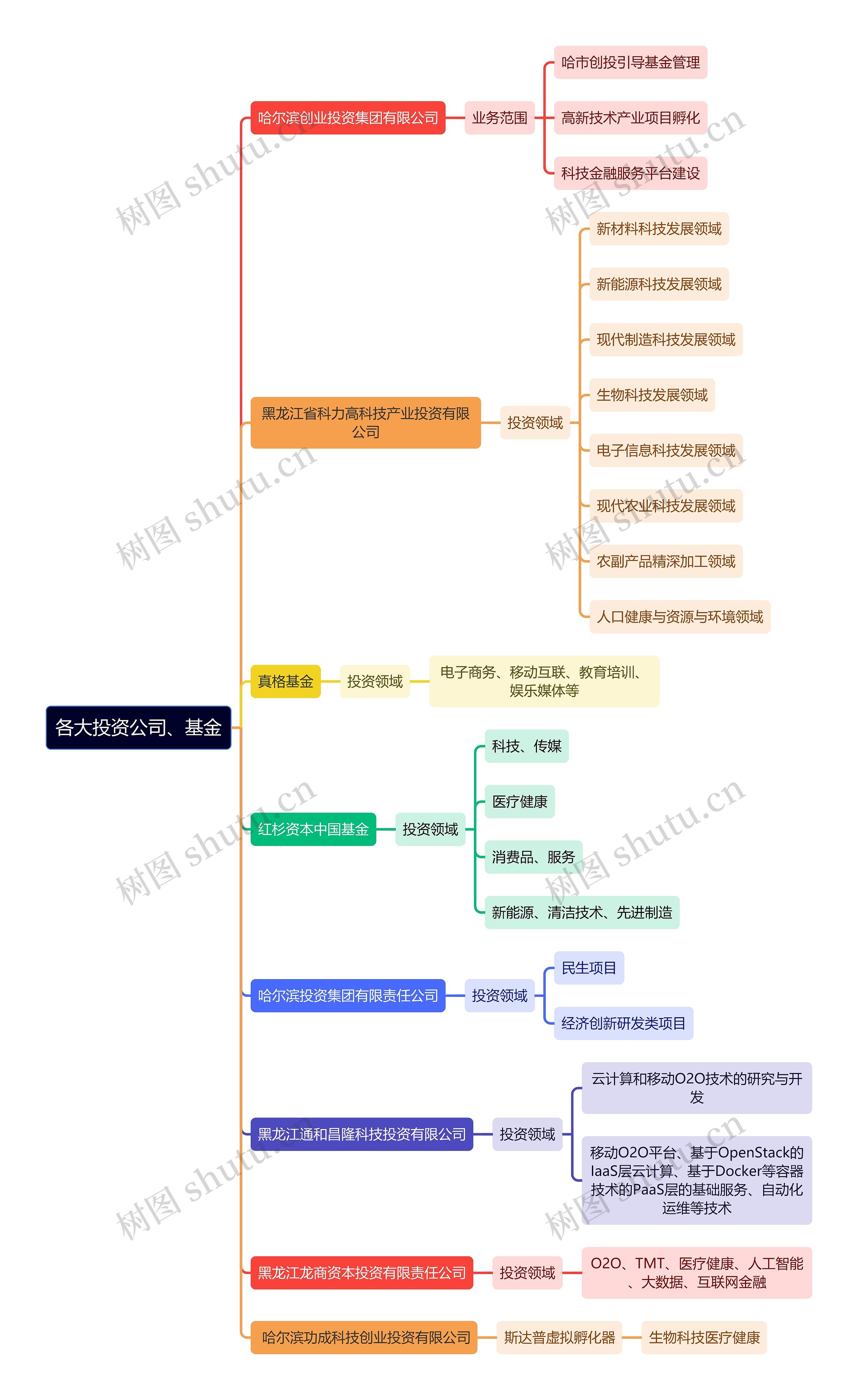 树图思维导图提供《各大投资公司和基金逻辑图》在线思维导图免费制作,点击“编辑”按钮,可对《各大投资公司和基金逻辑图》进行在线思维导图编辑,本思维导图属于思维导图模板主题,文件编号是:4d0b3ffbf1be6c4ee76d06c193c439bd