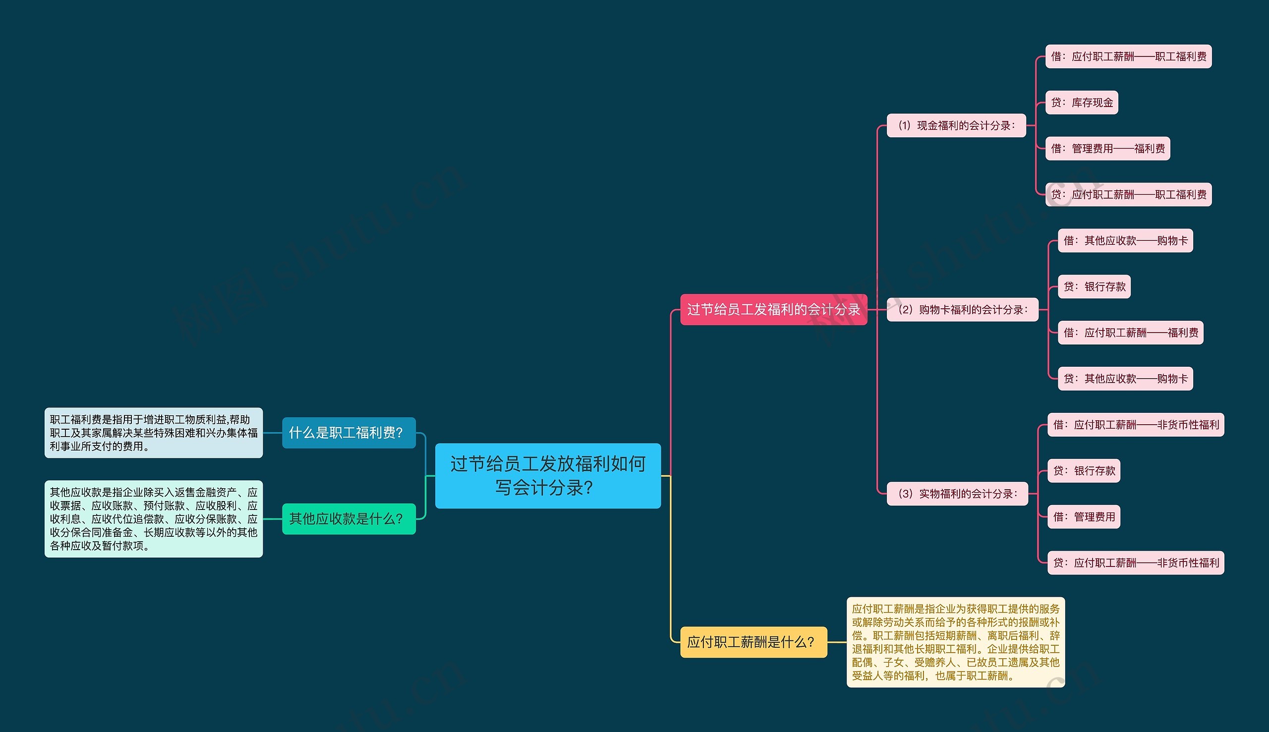 树图思维导图提供《过节给员工发放福利如何写会计分录?》在线思维导图免费制作,点击“编辑”按钮,可对《过节给员工发放福利如何写会计分录?》进行在线思维导图编辑,本思维导图属于思维导图模板主题,文件编号是:b387cde8d8a6e284f664b4c1d10268cb
