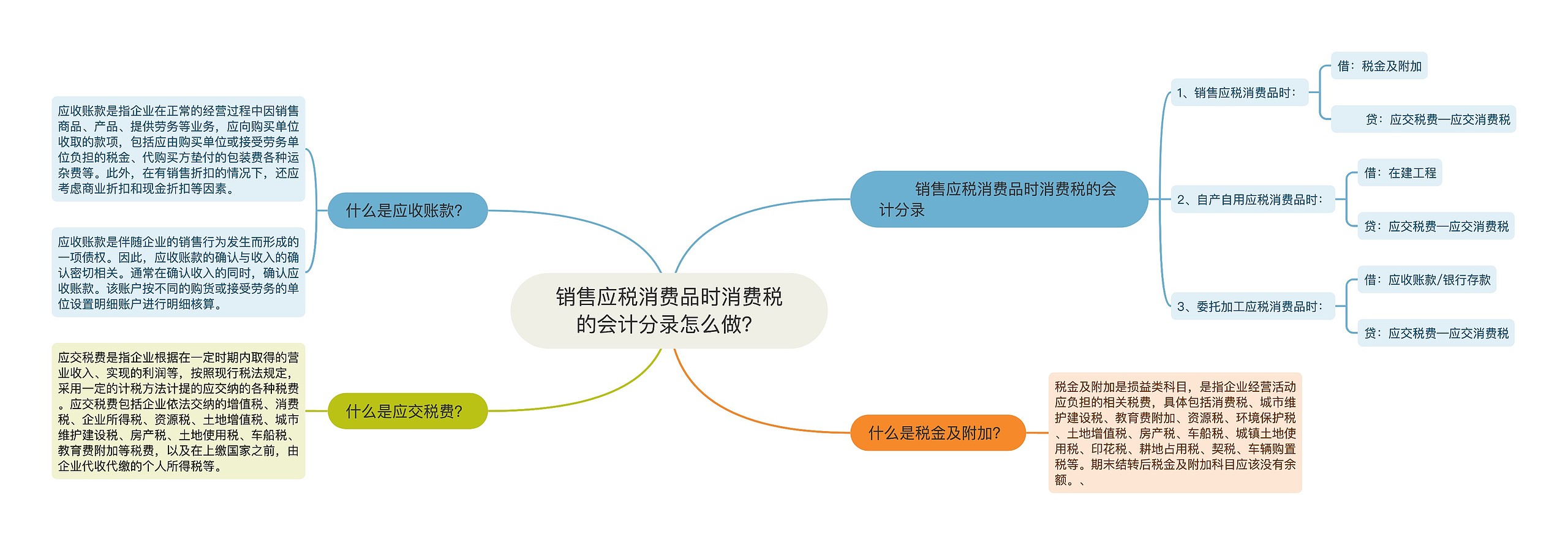 树图思维导图提供《销售应税消费品时消费税的会计分录怎么做?》在线思维导图免费制作,点击“编辑”按钮,可对《销售应税消费品时消费税的会计分录怎么做?》进行在线思维导图编辑,本思维导图属于思维导图模板主题,文件编号是:54c2d3bf0a1099a7fddc8deaa78f6e57