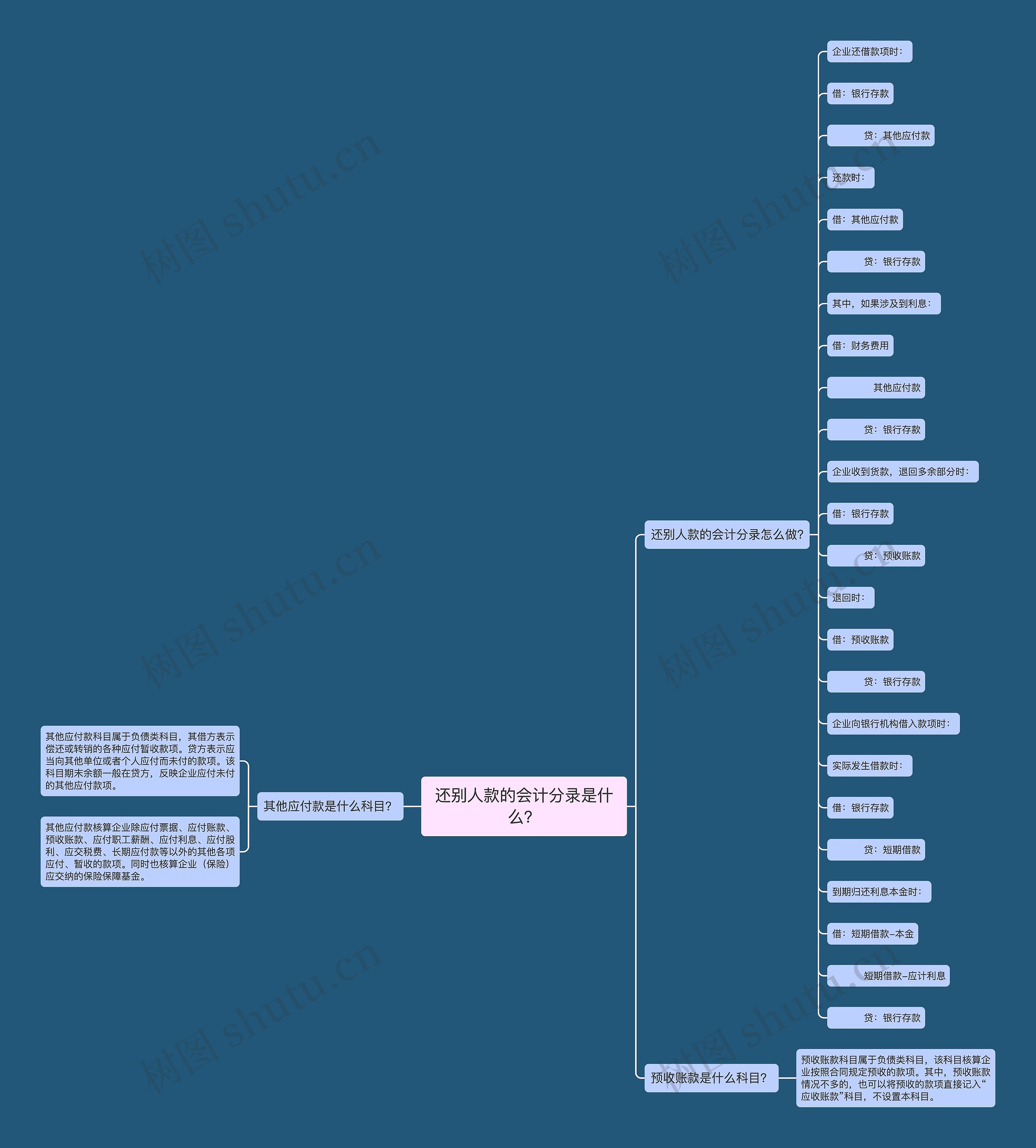 树图思维导图提供《还别人款的会计分录是什么?》在线思维导图免费制作,点击“编辑”按钮,可对《还别人款的会计分录是什么?》进行在线思维导图编辑,本思维导图属于思维导图模板主题,文件编号是:b2c320da378bdfa69d0f85321da19b50