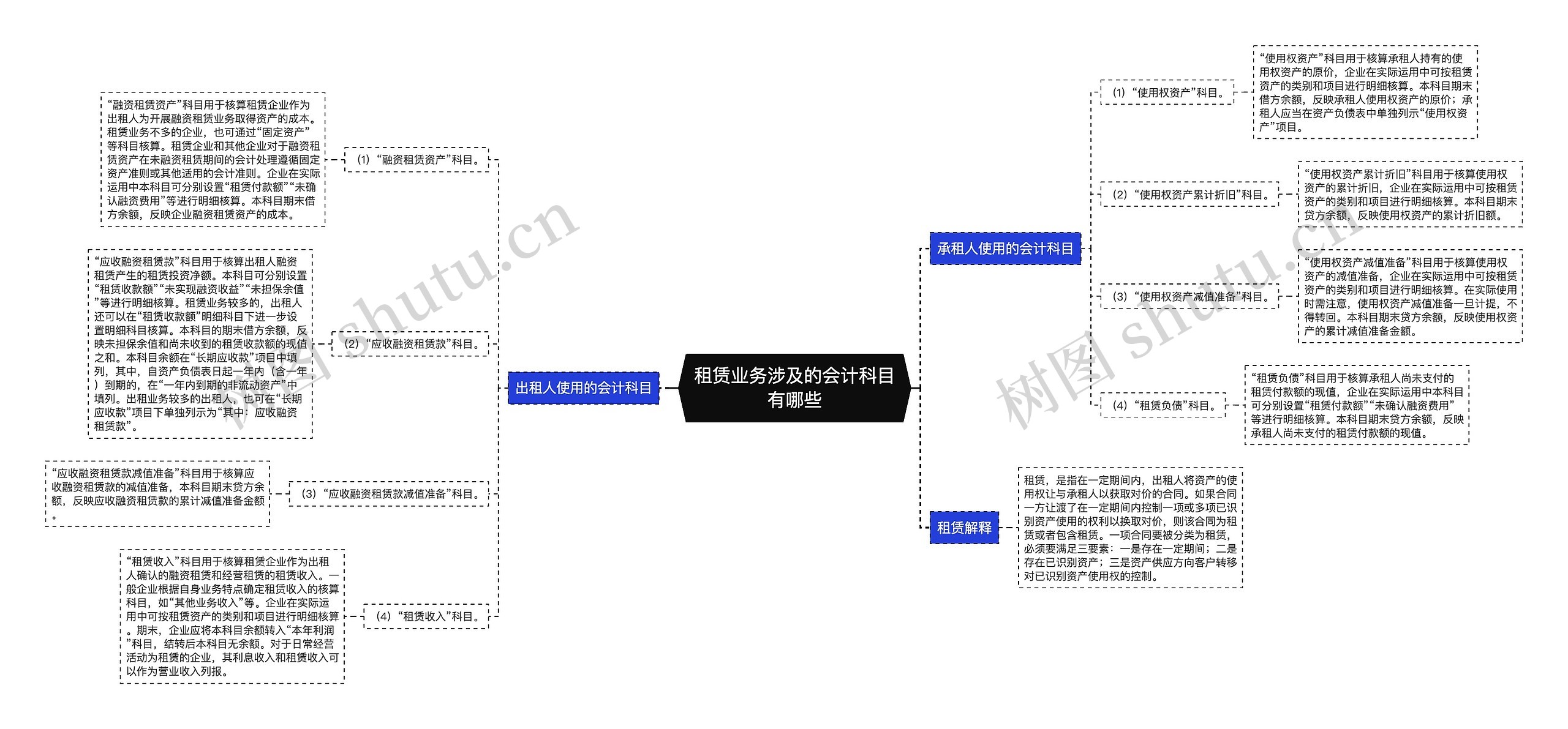 租赁业务主要分为承租人和出租人业务,分别涉及的会计科目及相关解释具体如下: