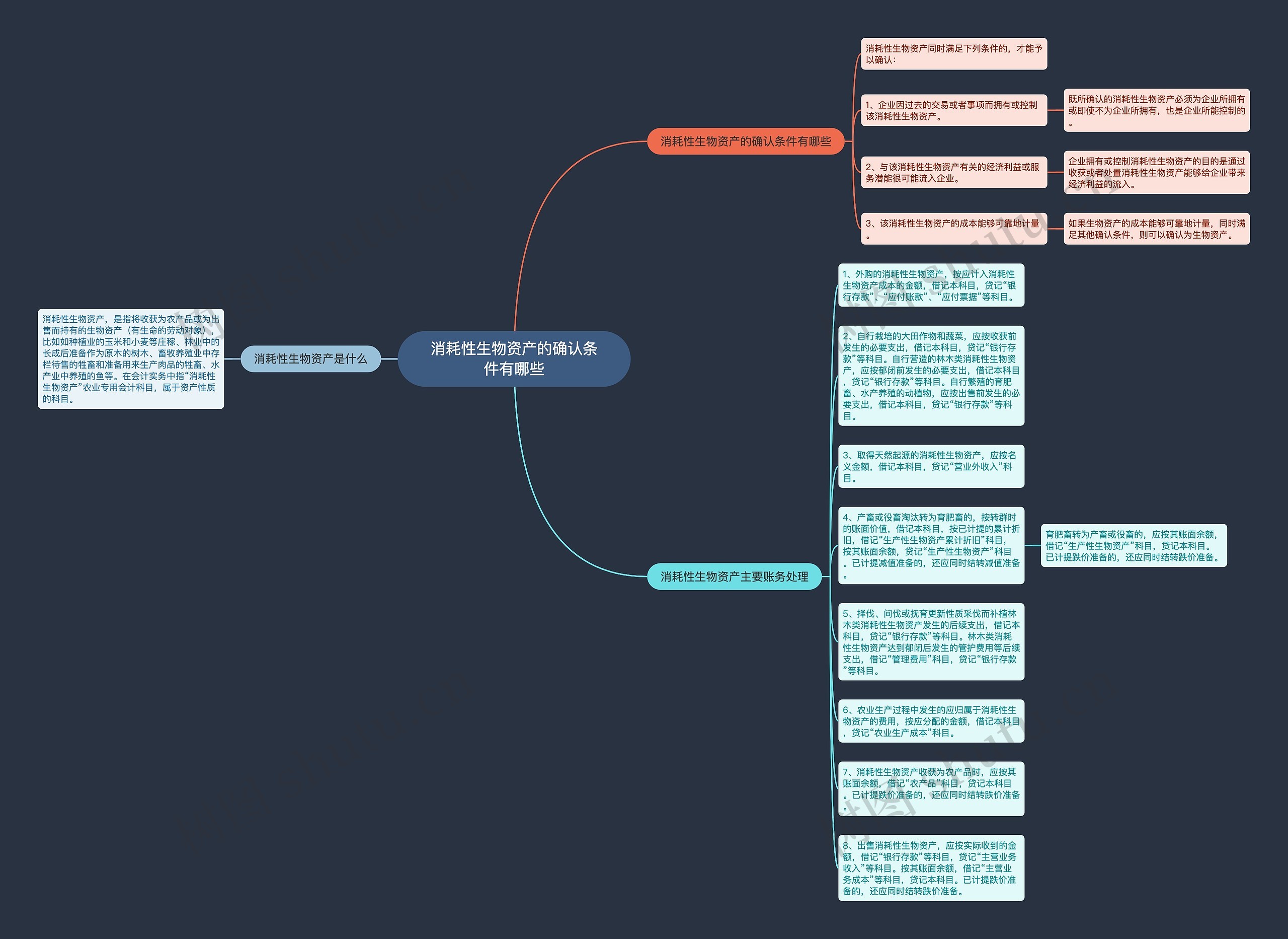6、农业生产过程中发生的应归属于消耗性生物资产的费用,按应分配的金额,借记本科目,贷记“农业生产成本”科目。