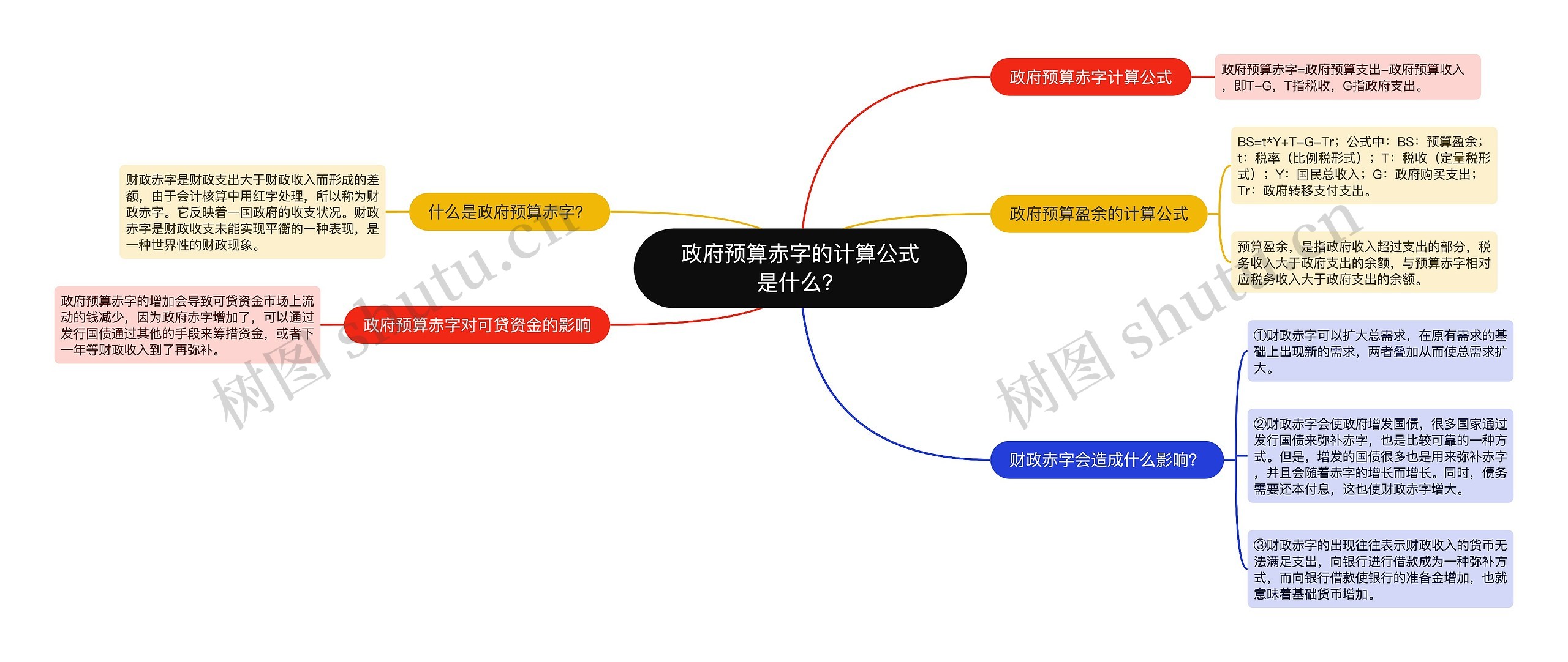 树图思维导图提供《政府预算赤字的计算公式是什么?》在线思维导图免费制作,点击“编辑”按钮,可对《政府预算赤字的计算公式是什么?》进行在线思维导图编辑,本思维导图属于思维导图模板主题,文件编号是:67b8075586766d75d54b666b58639ebe