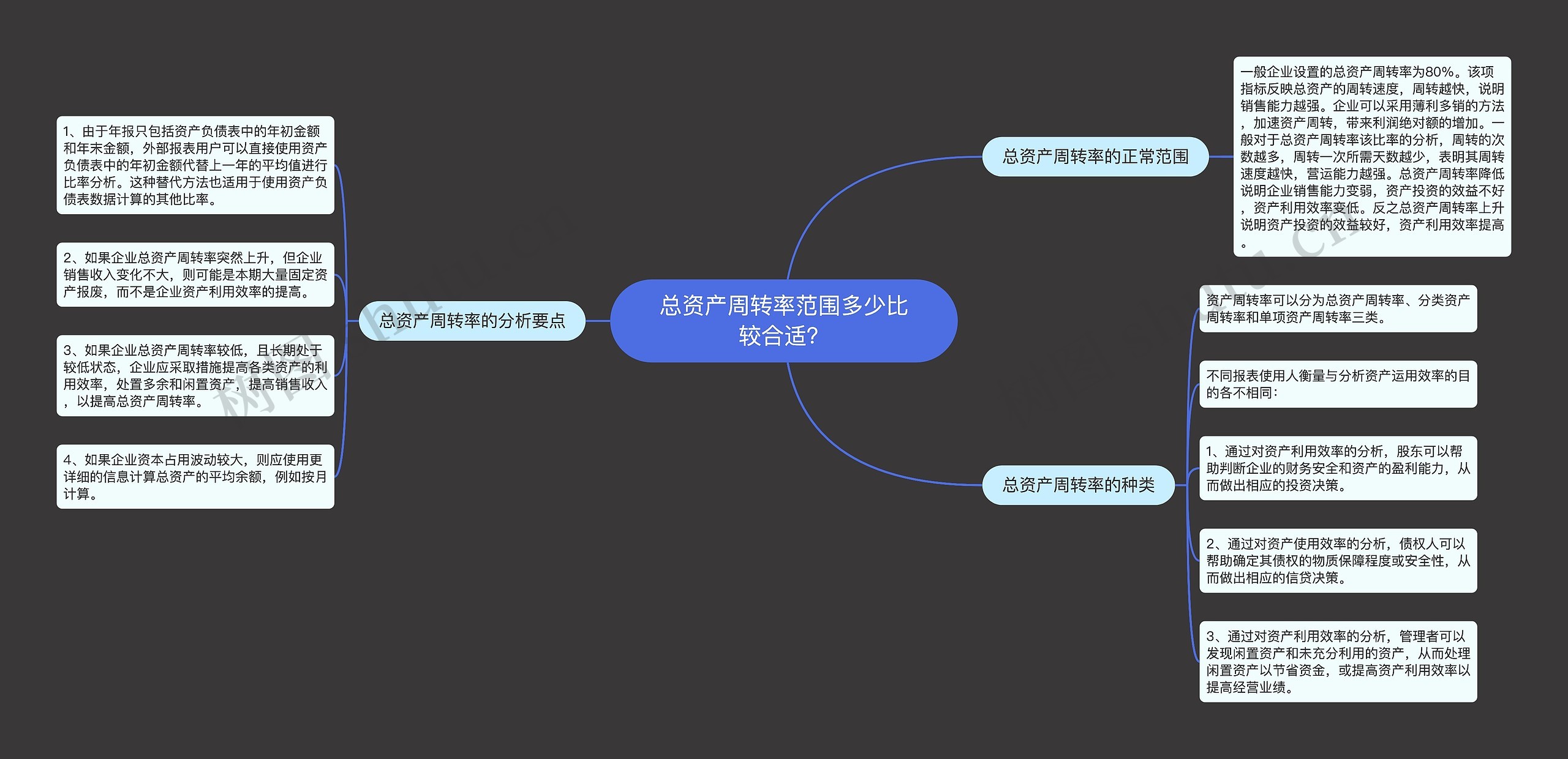 树图思维导图提供《总资产周转率范围多少比较合适?》在线思维导图免费制作,点击“编辑”按钮,可对《总资产周转率范围多少比较合适?》进行在线思维导图编辑,本思维导图属于思维导图模板主题,文件编号是:04bfb545c1e62ad191cd0177fc83597b