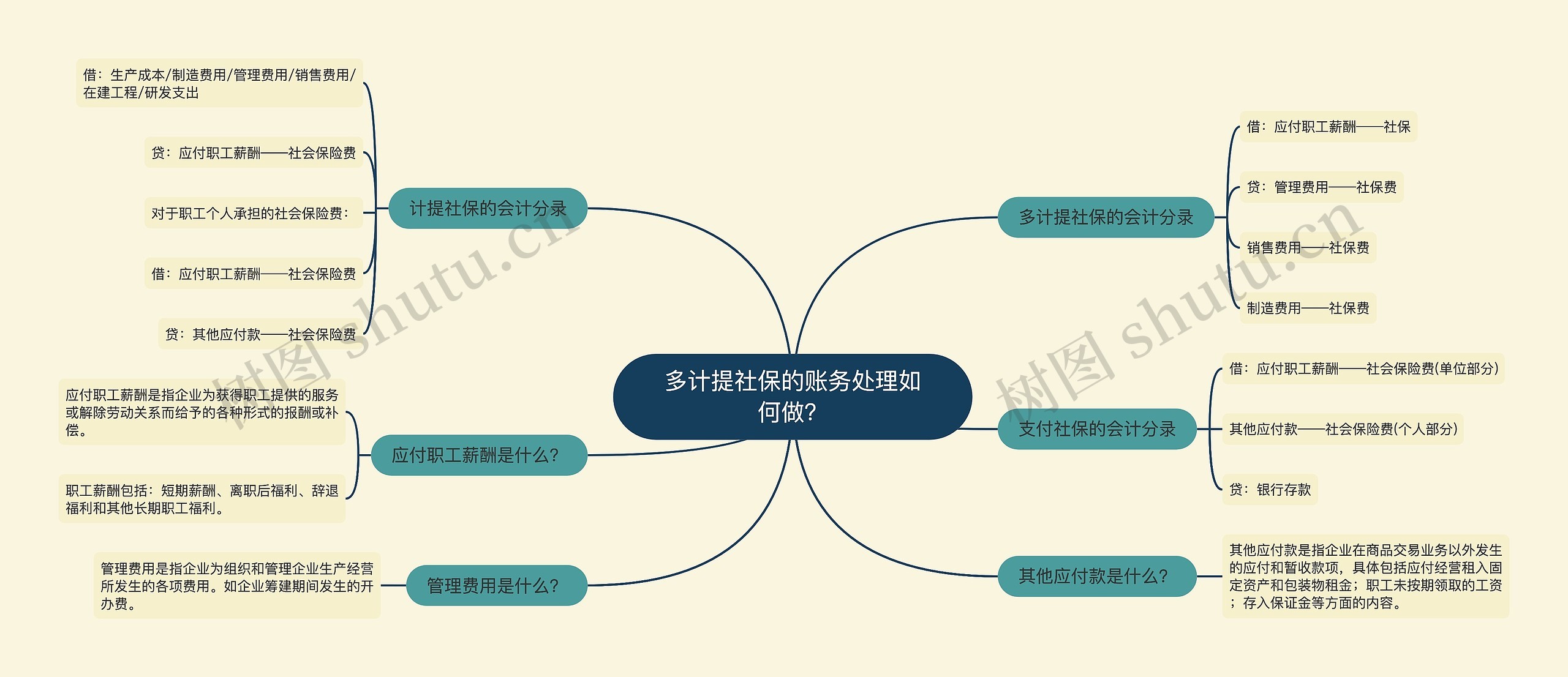 树图思维导图提供《多计提社保的账务处理如何做?》在线思维导图免费制作,点击“编辑”按钮,可对《多计提社保的账务处理如何做?》进行在线思维导图编辑,本思维导图属于思维导图模板主题,文件编号是:440082ee47bbf62fdb33de3f0f0f9a30