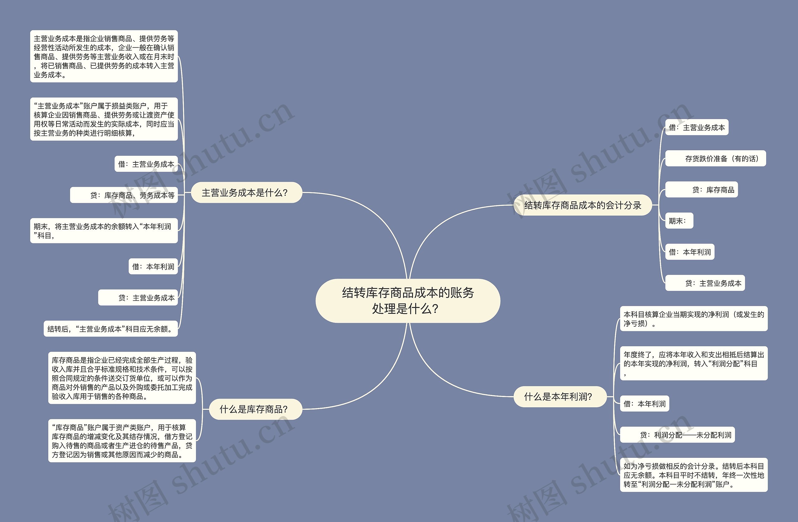 树图思维导图提供《结转库存商品成本的账务处理是什么?》在线思维导图免费制作,点击“编辑”按钮,可对《结转库存商品成本的账务处理是什么?》进行在线思维导图编辑,本思维导图属于思维导图模板主题,文件编号是:99d73d7f696666fbc36a566f842525bc