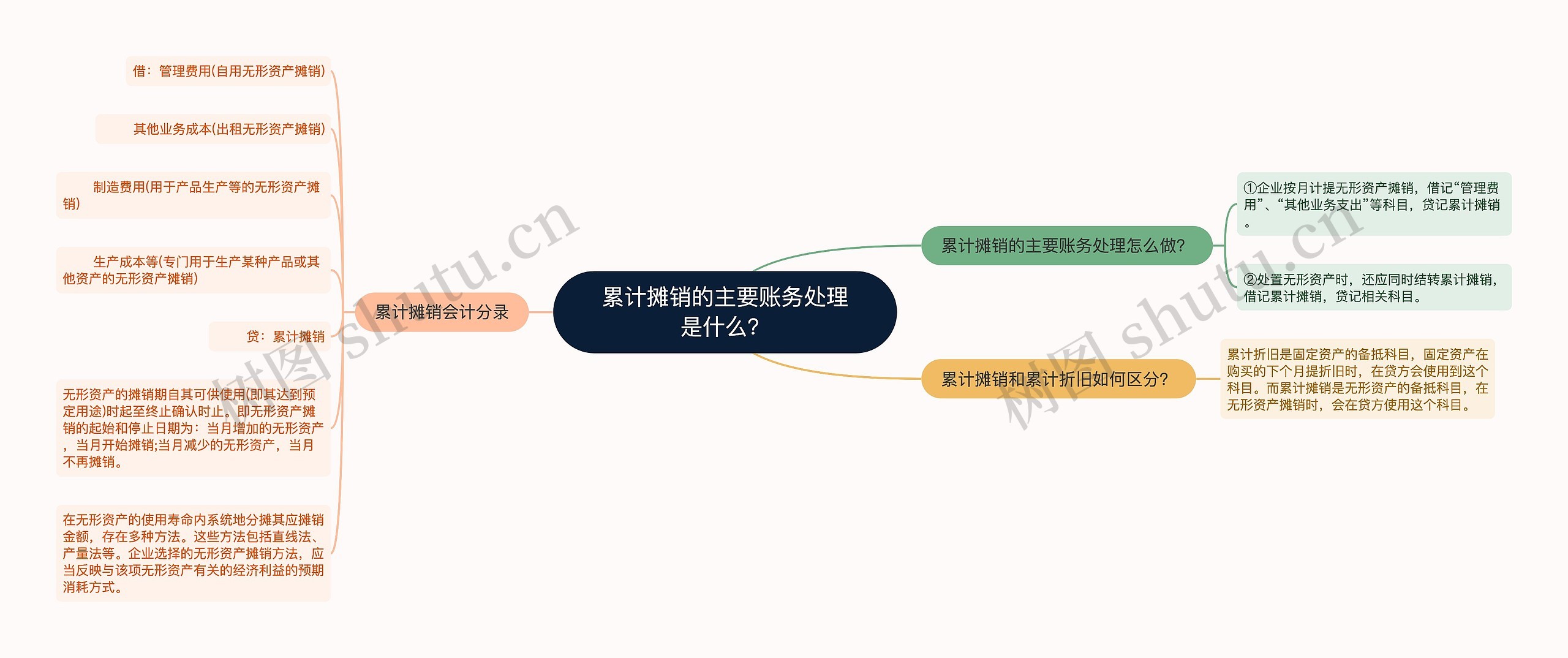 树图思维导图提供《累计摊销的主要账务处理是什么?》在线思维导图免费制作,点击“编辑”按钮,可对《累计摊销的主要账务处理是什么?》进行在线思维导图编辑,本思维导图属于思维导图模板主题,文件编号是:51fb581ad0a2e37d8897d72b071e5285
