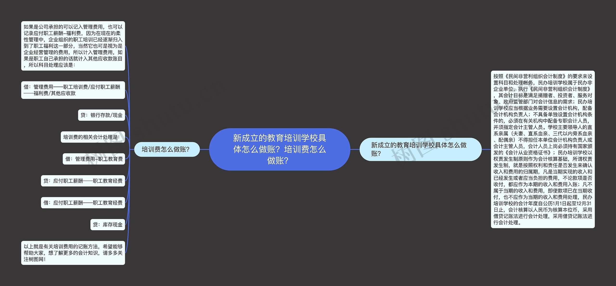 树图思维导图提供《新成立的教育培训学校具体怎么做账?培训费怎么做账?》在线思维导图免费制作,点击“编辑”按钮,可对《新成立的教育培训学校具体怎么做账?培训费怎么做账?》进行在线思维导图编辑,本思维导图属于思维导图模板主题,文件编号是:f9f65bb442e3bcbddf6daaf8c30e67c4