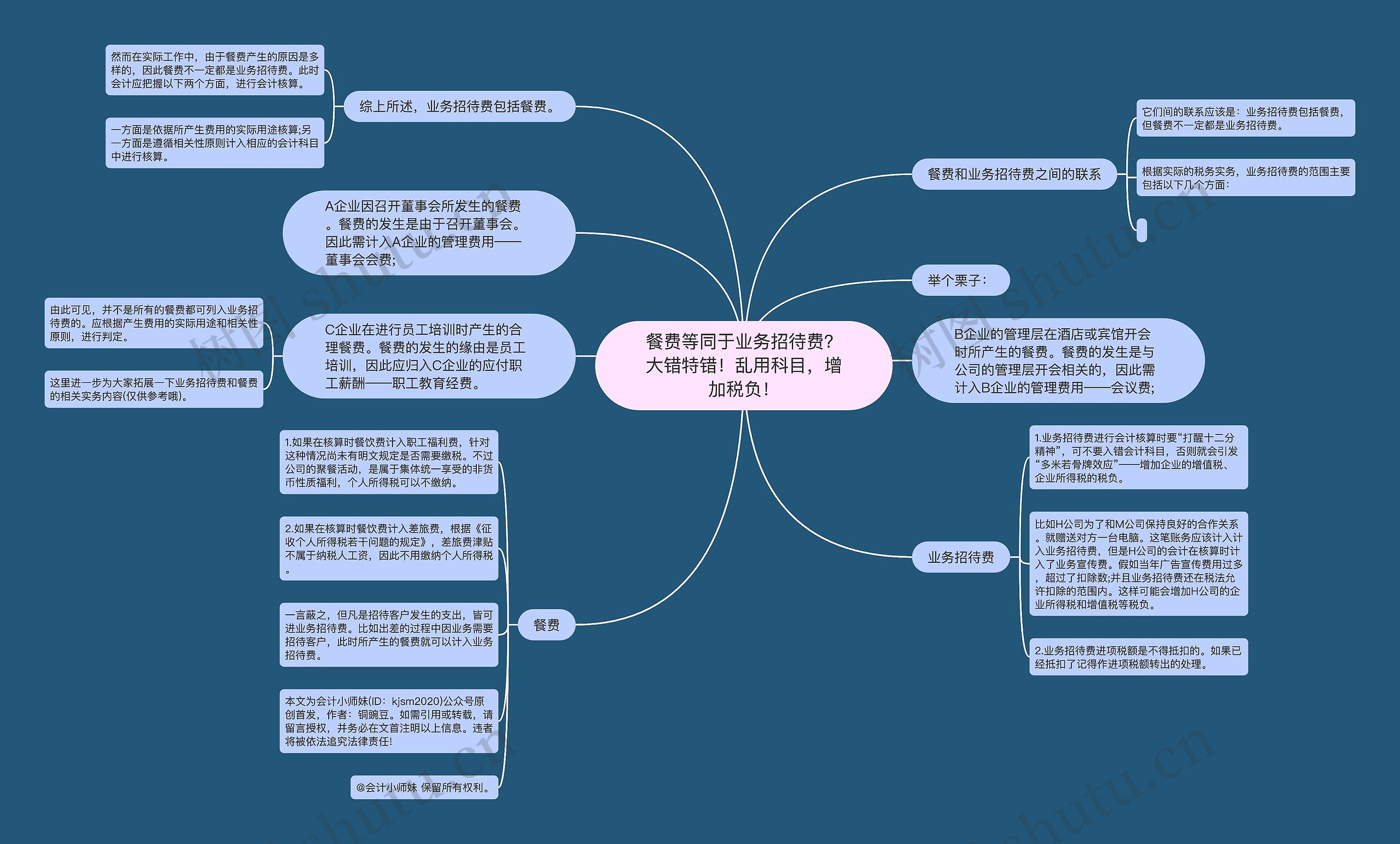 树图思维导图提供《餐费等同于业务招待费?大错特错!乱用科目,增加税负!》在线思维导图免费制作,点击“编辑”按钮,可对《餐费等同于业务招待费?大错特错!乱用科目,增加税负!》进行在线思维导图编辑,本思维导图属于思维导图模板主题,文件编号是:fc802b36fabcb7e6e617ce92a7a68501