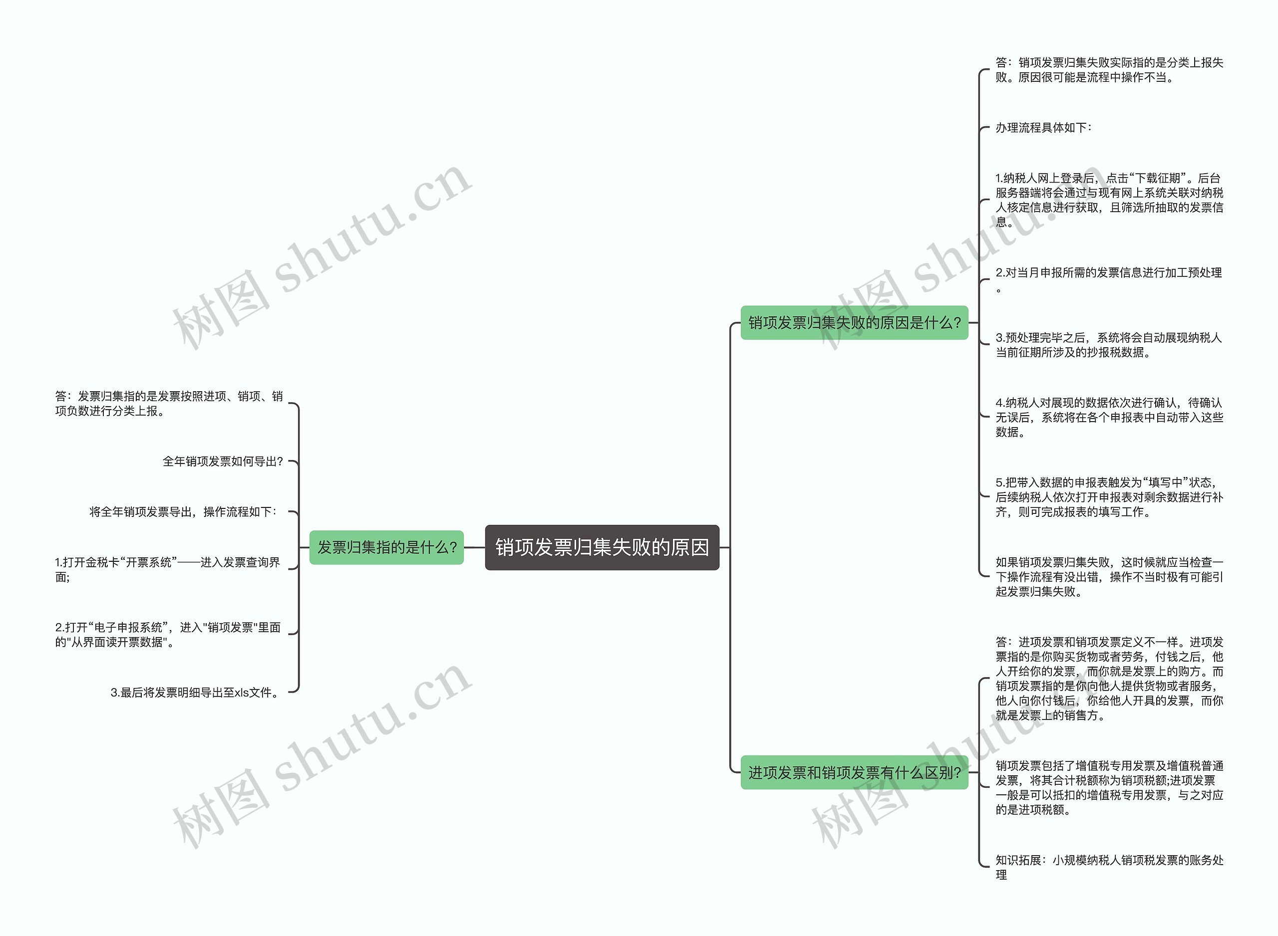 树图思维导图提供《销项发票归集失败的原因》在线思维导图免费制作,点击“编辑”按钮,可对《销项发票归集失败的原因》进行在线思维导图编辑,本思维导图属于思维导图模板主题,文件编号是:002789e48f80e7a294d5278b407640e6