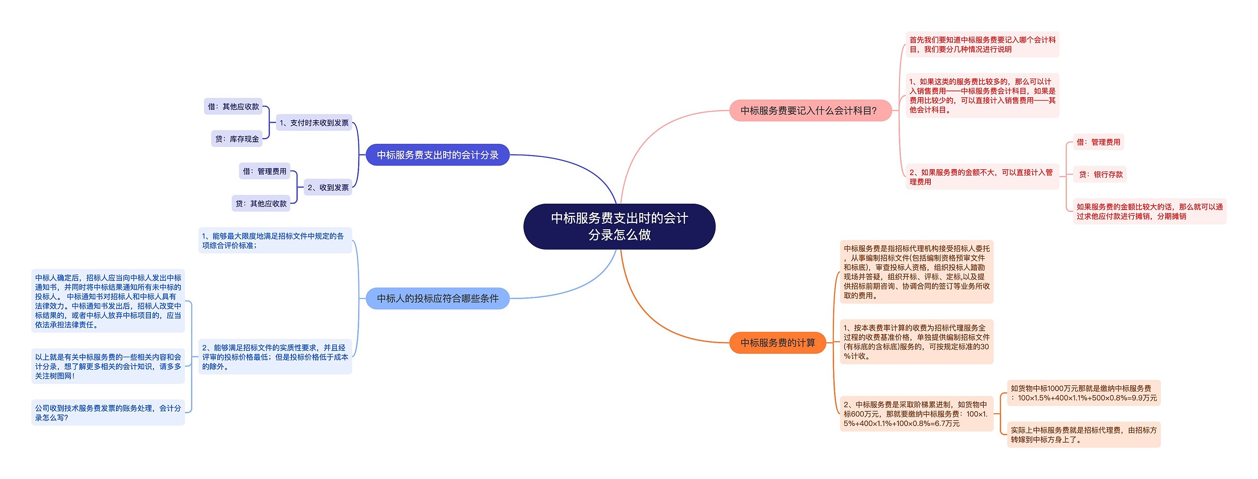 树图思维导图提供《中标服务费支出时的会计分录怎么做》在线思维导图免费制作,点击“编辑”按钮,可对《中标服务费支出时的会计分录怎么做》进行在线思维导图编辑,本思维导图属于思维导图模板主题,文件编号是:5fc00842f189a096dbfdabfc6658fc46