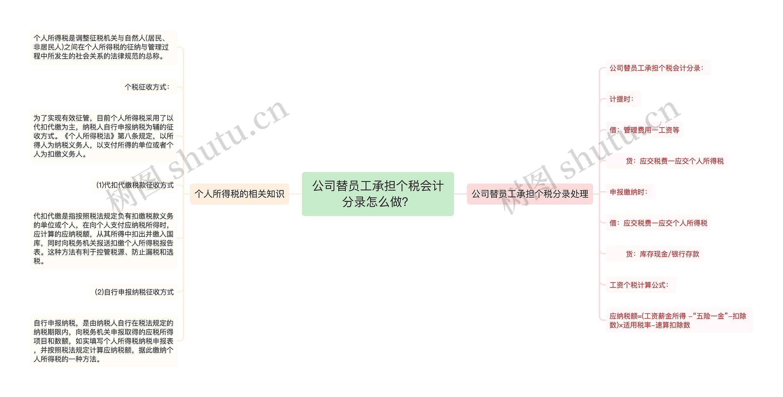 树图思维导图提供《公司替员工承担个税会计分录怎么做?》在线思维导图免费制作,点击“编辑”按钮,可对《公司替员工承担个税会计分录怎么做?》进行在线思维导图编辑,本思维导图属于思维导图模板主题,文件编号是:91cbe3eb0a872d20e5d3276777adceb8