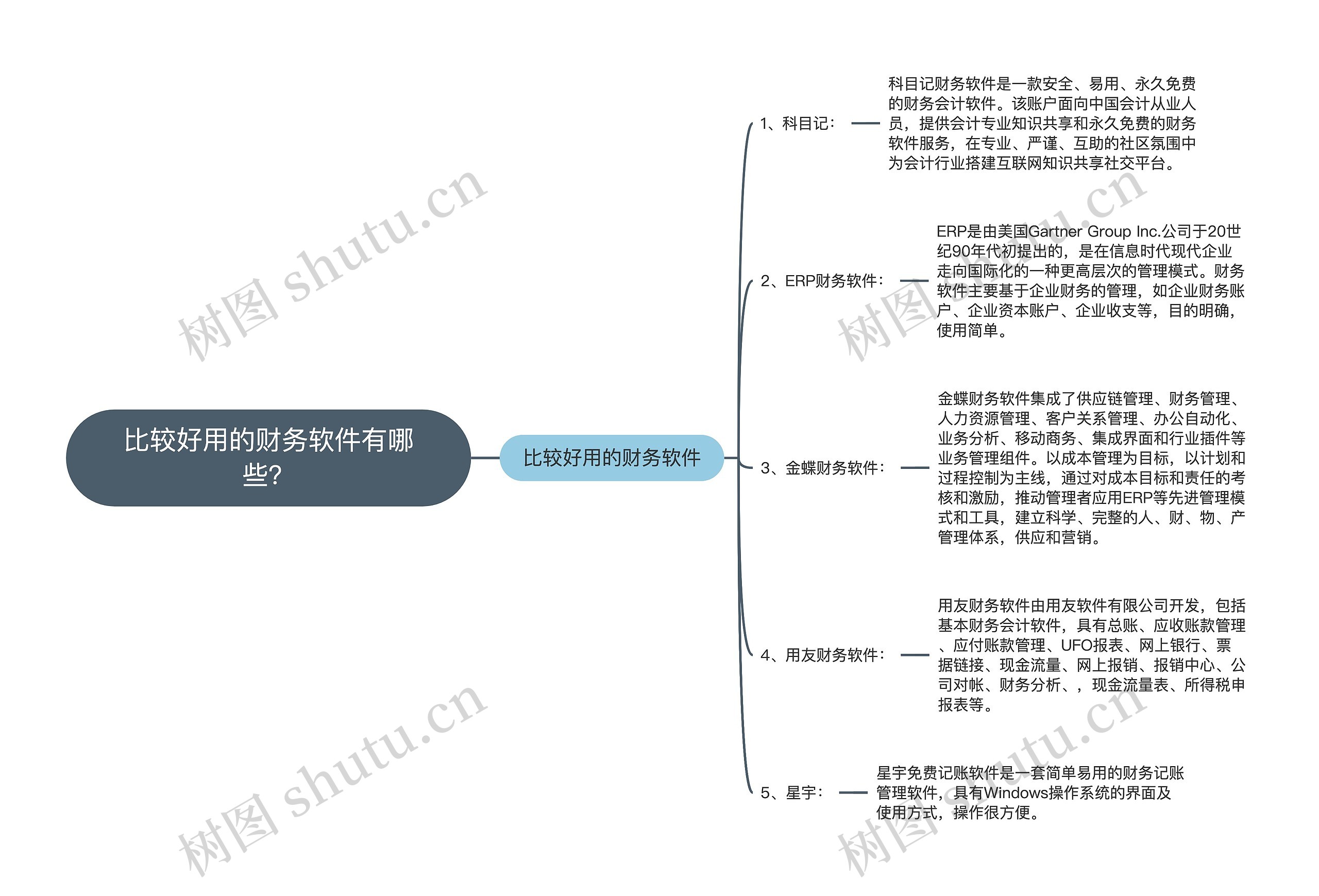 树图思维导图提供《比较好用的财务软件有哪些?》在线思维导图免费制作,点击“编辑”按钮,可对《比较好用的财务软件有哪些?》进行在线思维导图编辑,本思维导图属于思维导图模板主题,文件编号是:11d1e614a7f11ab1e2503ce83b564924