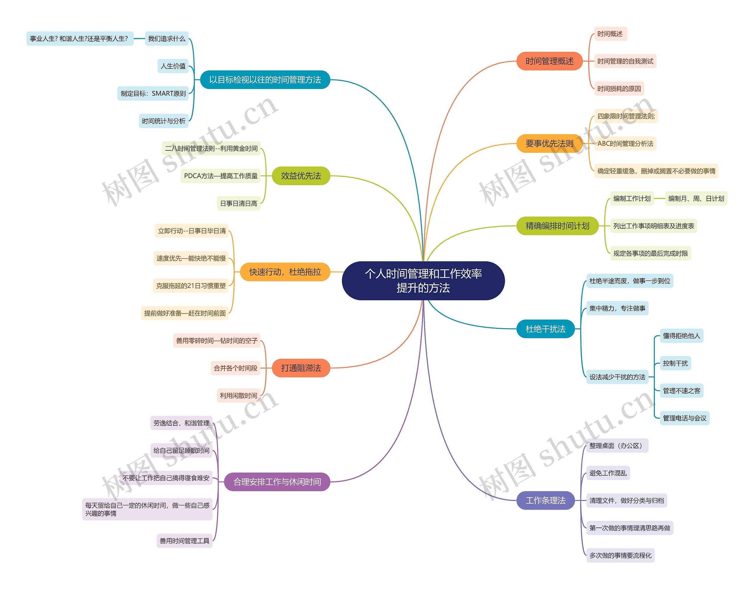 树图思维导图提供《个人时间管理和工作效率提升的方法》在线思维导图免费制作,点击“编辑”按钮,可对《个人时间管理和工作效率提升的方法》进行在线思维导图编辑,本思维导图属于思维导图模板主题,文件编号是:fbfbb9bbf540a2cd6feaffbf45479ece