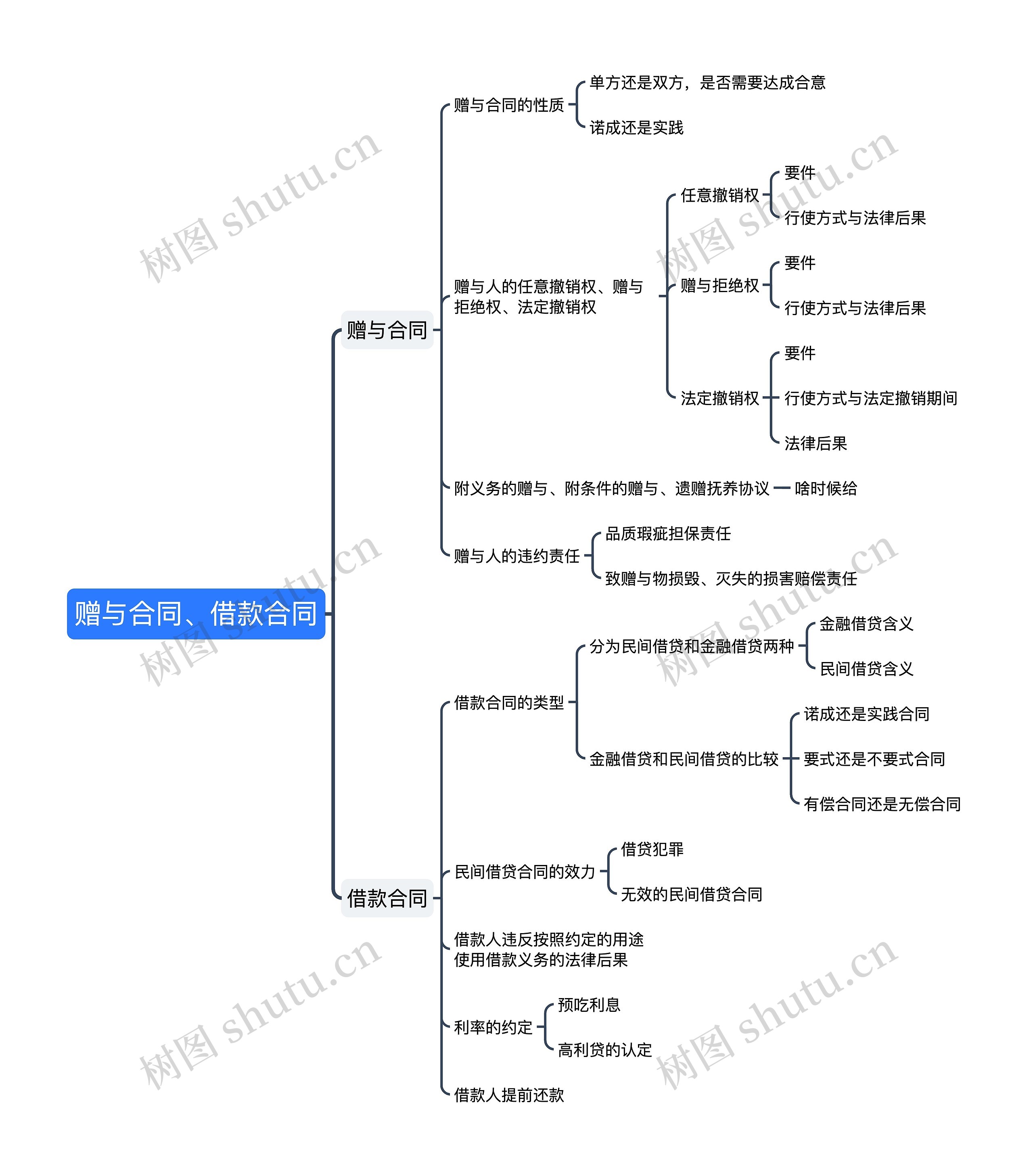 树图思维导图提供《赠与合同、借款合同》在线思维导图免费制作,点击“编辑”按钮,可对《赠与合同、借款合同》进行在线思维导图编辑,本思维导图属于思维导图模板主题,文件编号是:5b64bfad77666327ac71ed132166d46c