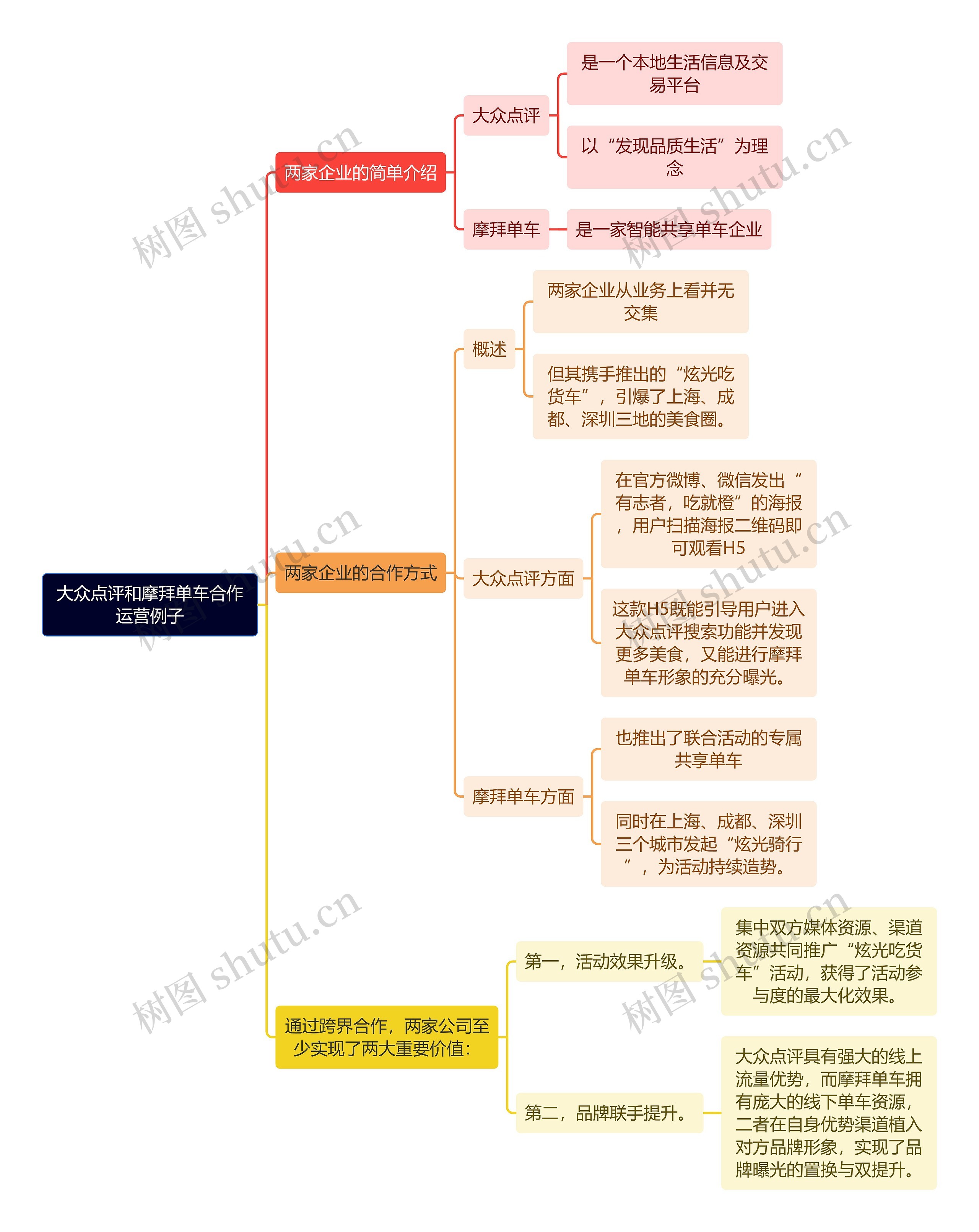 树图思维导图提供《新媒体运营知识大众点评和摩拜单车合作运营例子思维导图》在线思维导图免费制作,点击“编辑”按钮,可对《新媒体运营知识大众点评和摩拜单车合作运营例子思维导图》进行在线思维导图编辑,本思维导图属于思维导图模板主题,文件编号是:01758f18ec9c279493b00603878880f9
