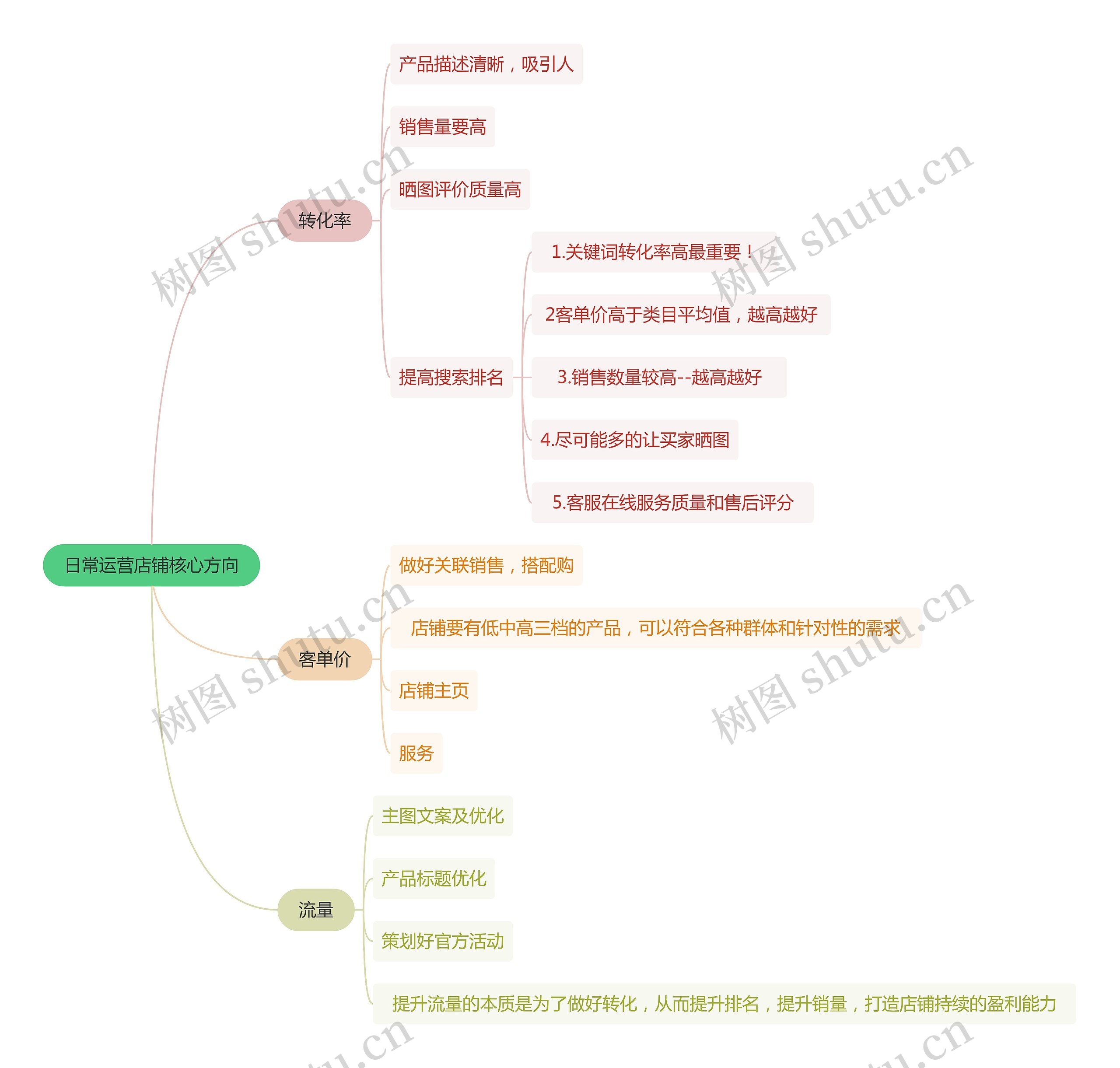 树图思维导图提供《日常运营店铺核心方向》在线思维导图免费制作,点击“编辑”按钮,可对《日常运营店铺核心方向》进行在线思维导图编辑,本思维导图属于思维导图模板主题,文件编号是:86bf84845360481f6b675a2bd8178398