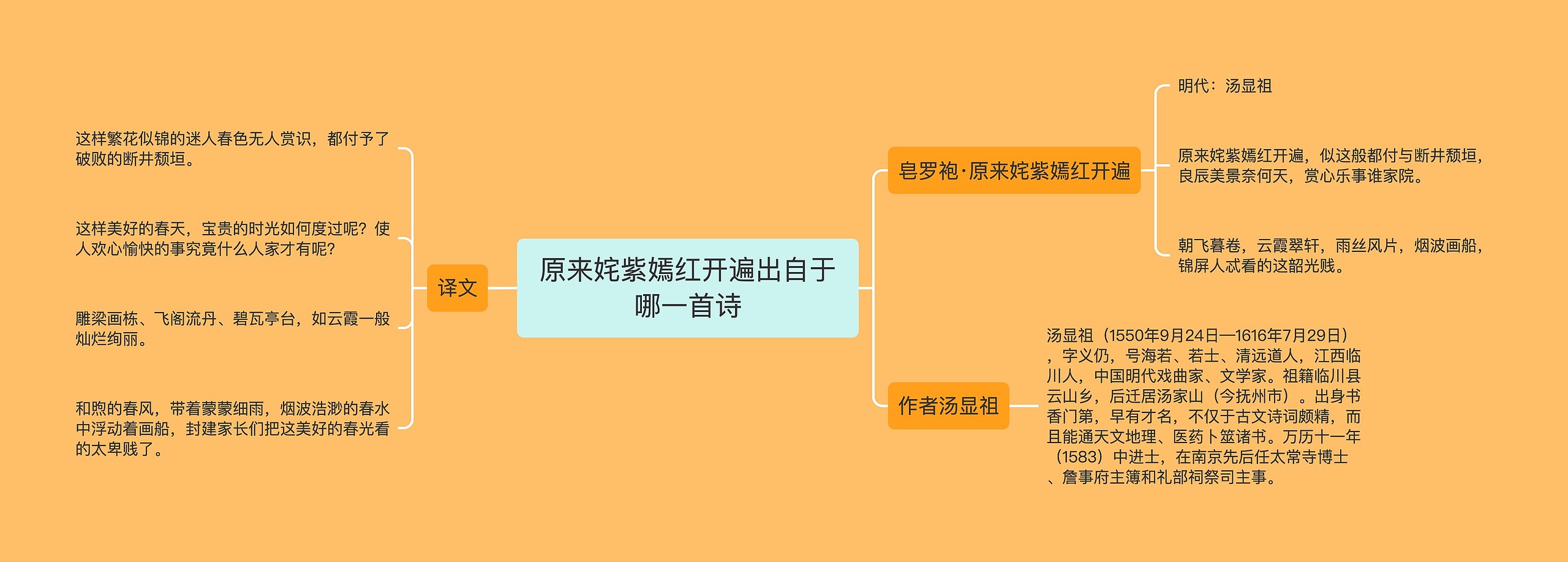 树图思维导图提供《原来姹紫嫣红开遍出自于哪一首诗》在线思维导图免费制作,点击“编辑”按钮,可对《原来姹紫嫣红开遍出自于哪一首诗》进行在线思维导图编辑,本思维导图属于思维导图模板主题,文件编号是:1900fff4c9ce72c42ab767c3a689d3ee