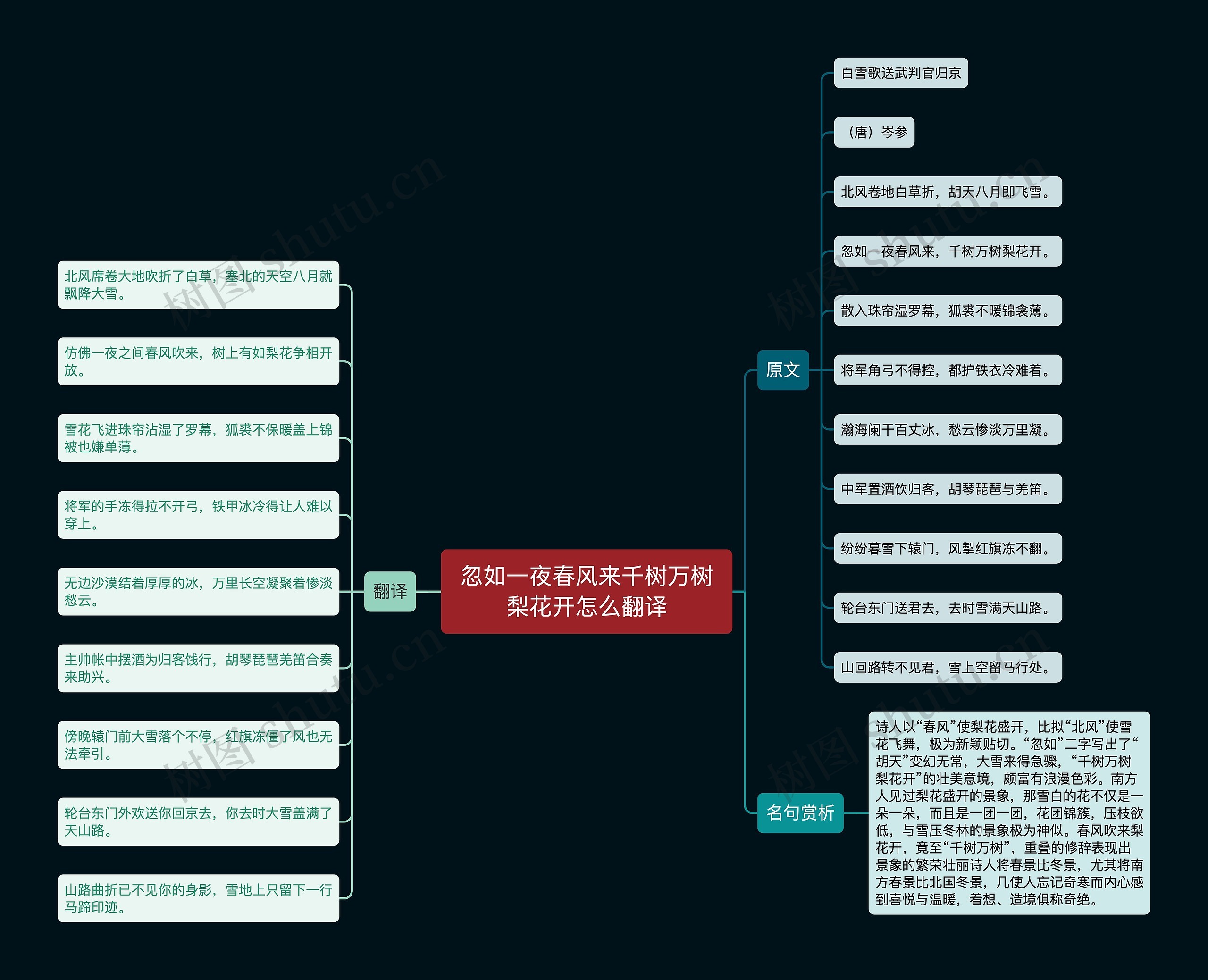 树图思维导图提供《忽如一夜春风来千树万树梨花开怎么翻译》在线思维导图免费制作,点击“编辑”按钮,可对《忽如一夜春风来千树万树梨花开怎么翻译》进行在线思维导图编辑,本思维导图属于思维导图模板主题,文件编号是:6ee3f5bf9c130bf4e051af014ccf78dc
