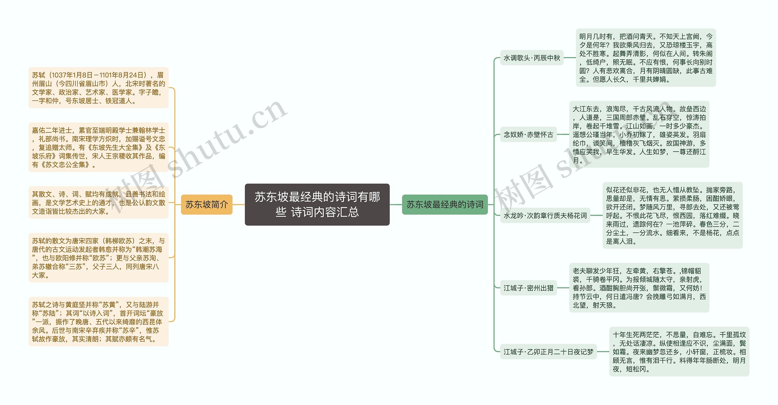 树图思维导图提供《苏东坡最经典的诗词有哪些 诗词内容汇总》在线思维导图免费制作,点击“编辑”按钮,可对《苏东坡最经典的诗词有哪些 诗词内容汇总》进行在线思维导图编辑,本思维导图属于思维导图模板主题,文件编号是:7104db6ccdb6d2407fad4af519b613bb