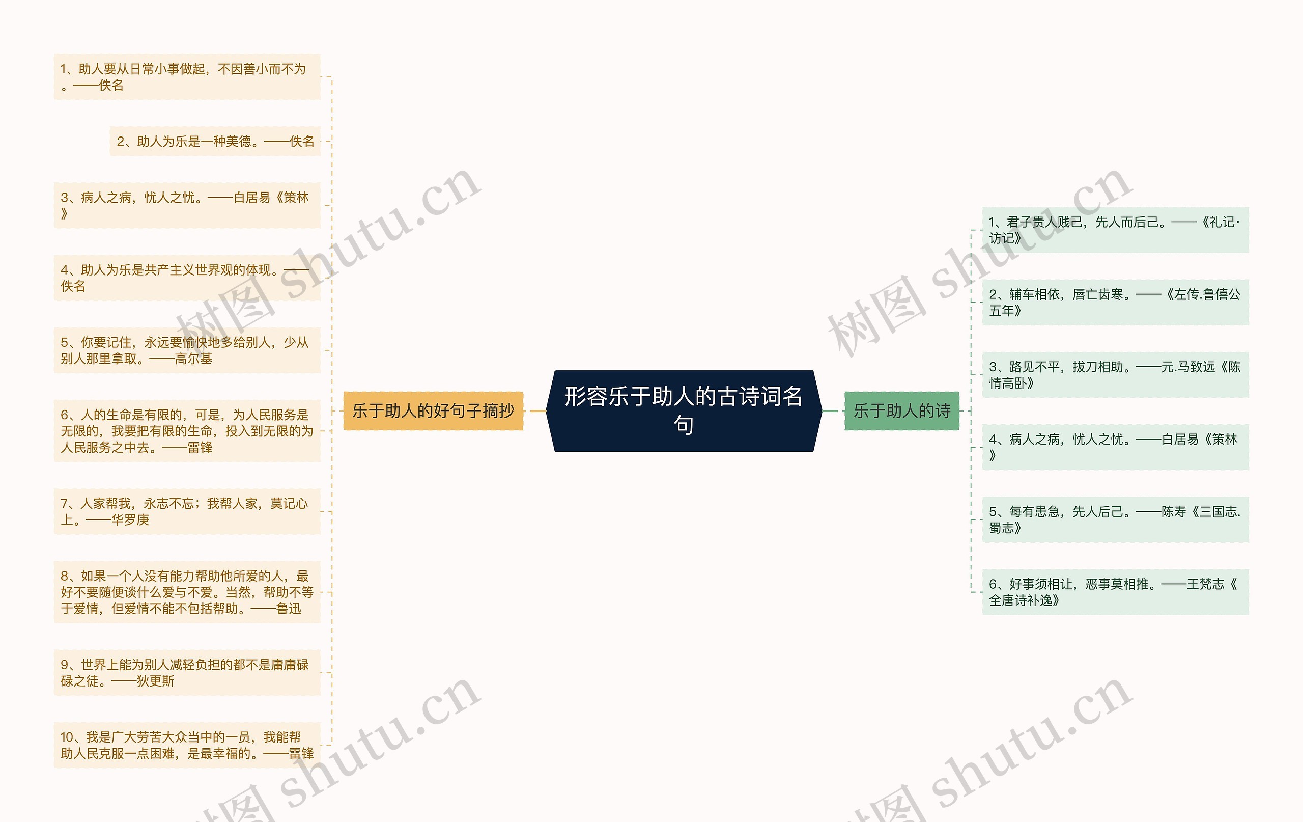 树图思维导图提供《形容乐于助人的古诗词名句》在线思维导图免费制作,点击“编辑”按钮,可对《形容乐于助人的古诗词名句》进行在线思维导图编辑,本思维导图属于思维导图模板主题,文件编号是:7558ae4011e9a810f1c197b244385d6a