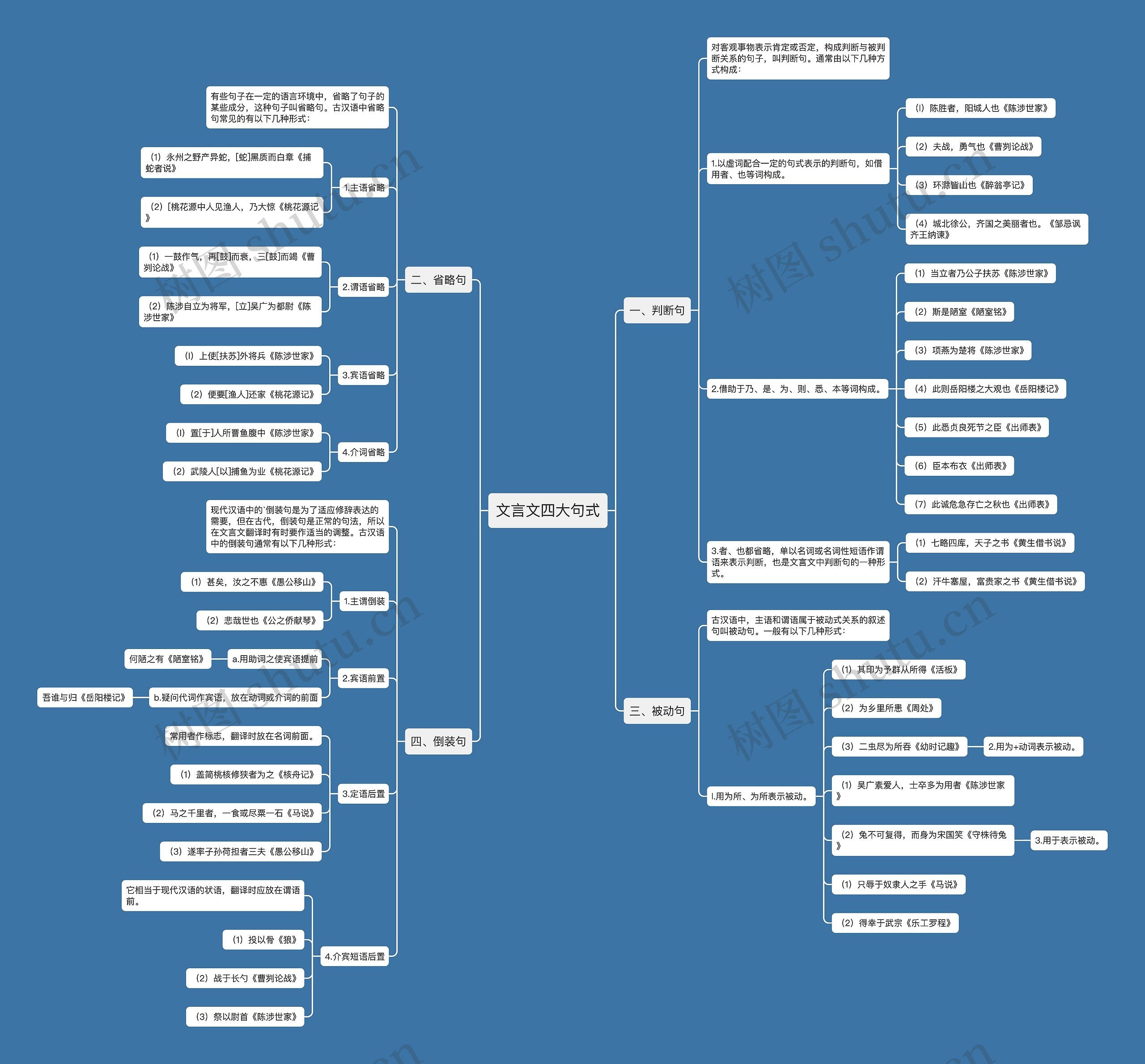 树图思维导图提供《文言文四大句式》在线思维导图免费制作,点击“编辑”按钮,可对《文言文四大句式》进行在线思维导图编辑,本思维导图属于思维导图模板主题,文件编号是:1221ffef964355d86ad0ac01f98829c6