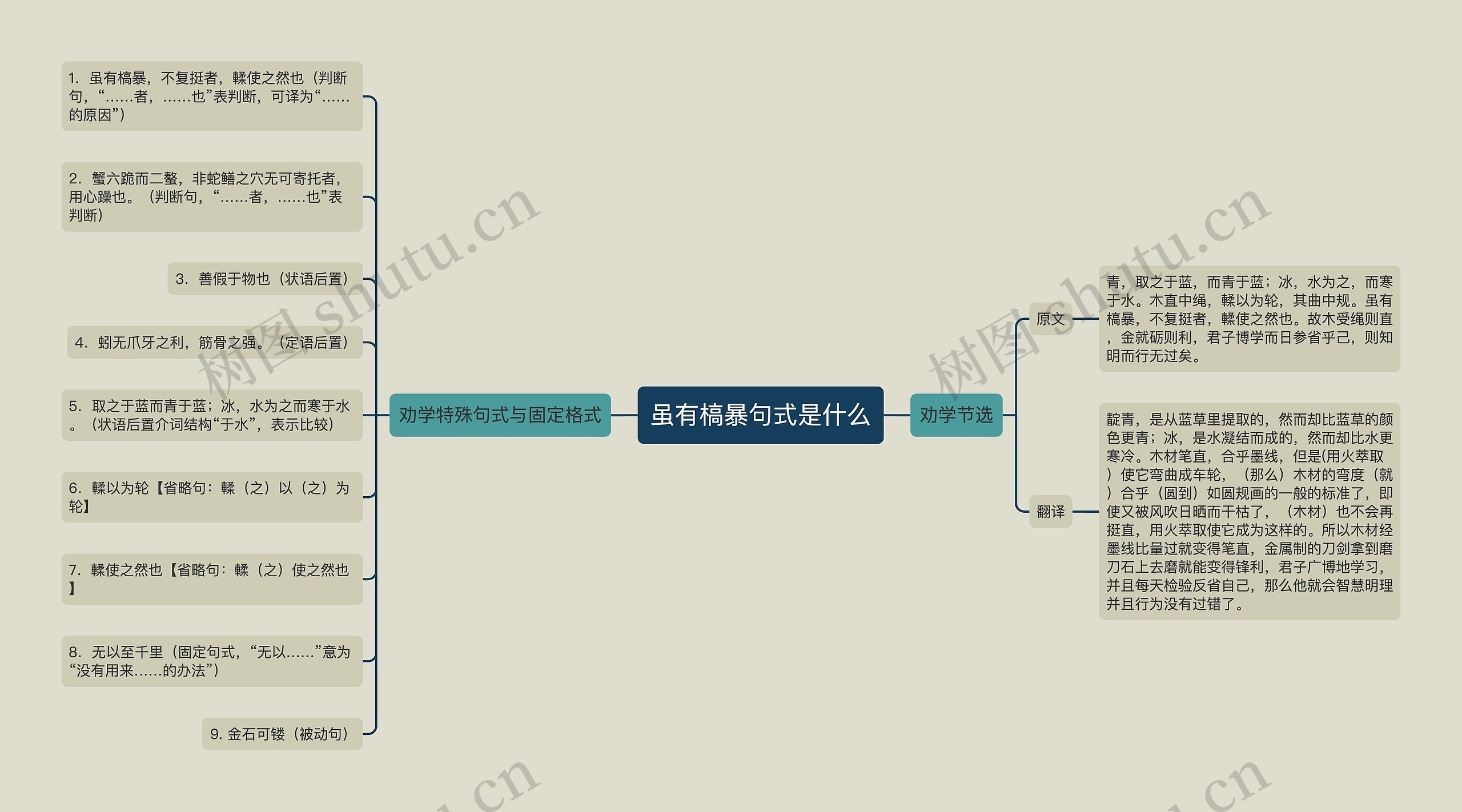 树图思维导图提供《虽有槁暴句式是什么》在线思维导图免费制作,点击“编辑”按钮,可对《虽有槁暴句式是什么》进行在线思维导图编辑,本思维导图属于思维导图模板主题,文件编号是:11162f1e9d136143a98eb84d62fd5228
