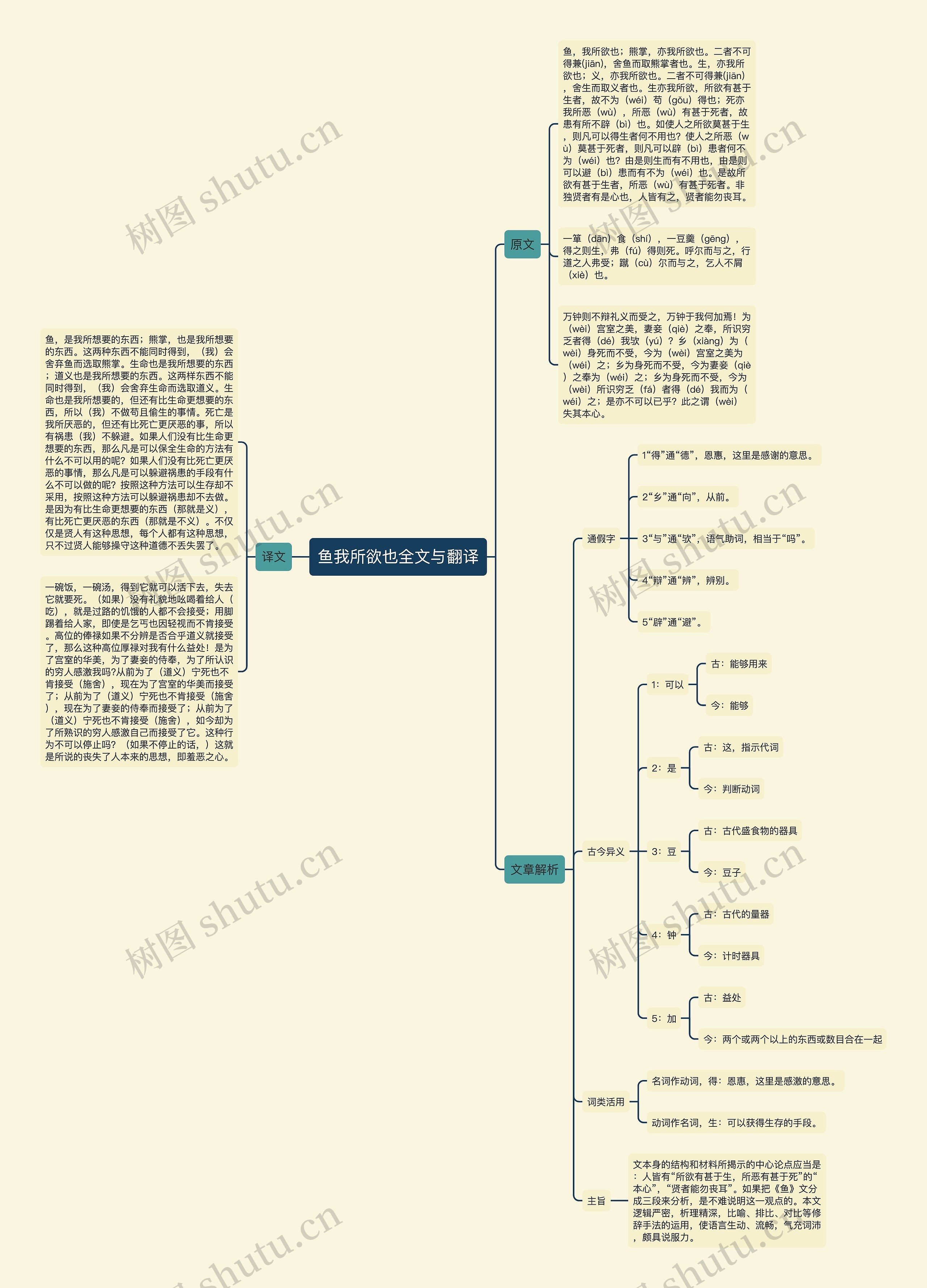 树图思维导图提供《鱼我所欲也全文与翻译》在线思维导图免费制作,点击“编辑”按钮,可对《鱼我所欲也全文与翻译》进行在线思维导图编辑,本思维导图属于思维导图模板主题,文件编号是:a549e29103983b7569635825b26b04d5