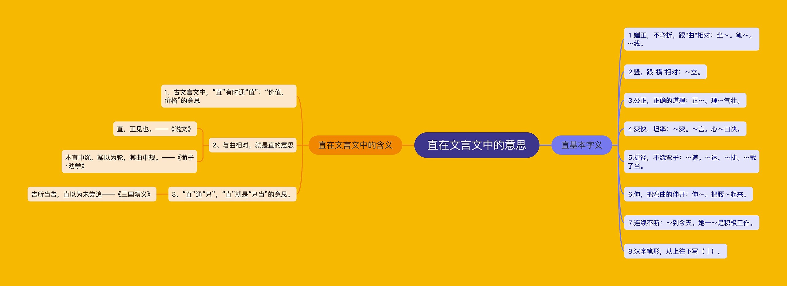 树图思维导图提供《直在文言文中的意思》在线思维导图免费制作,点击“编辑”按钮,可对《直在文言文中的意思》进行在线思维导图编辑,本思维导图属于思维导图模板主题,文件编号是:c2a0337c0d9e0dd2bfb81c5896a95324