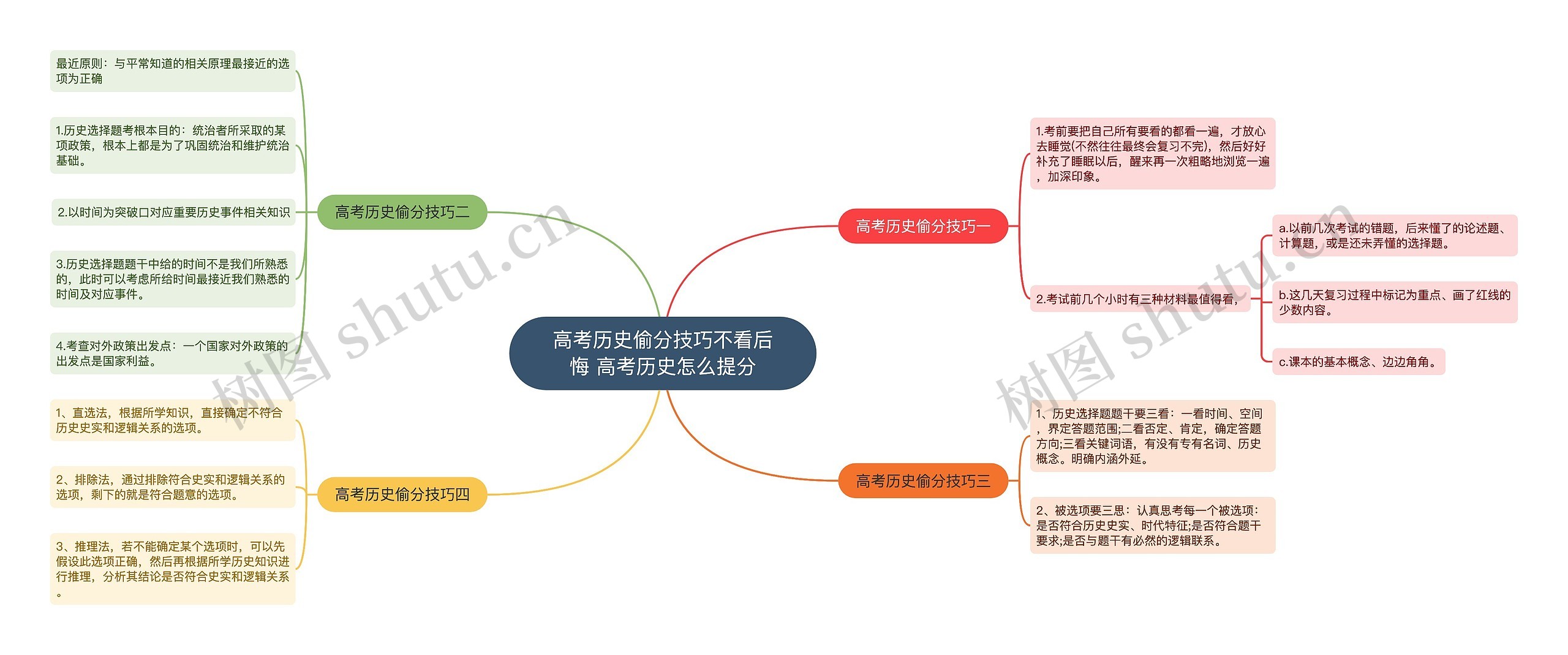 树图思维导图提供《高考历史偷分技巧不看后悔 高考历史怎么提分》在线思维导图免费制作,点击“编辑”按钮,可对《高考历史偷分技巧不看后悔 高考历史怎么提分》进行在线思维导图编辑,本思维导图属于思维导图模板主题,文件编号是:731b13bc033db86e4d0b81736e935f9e