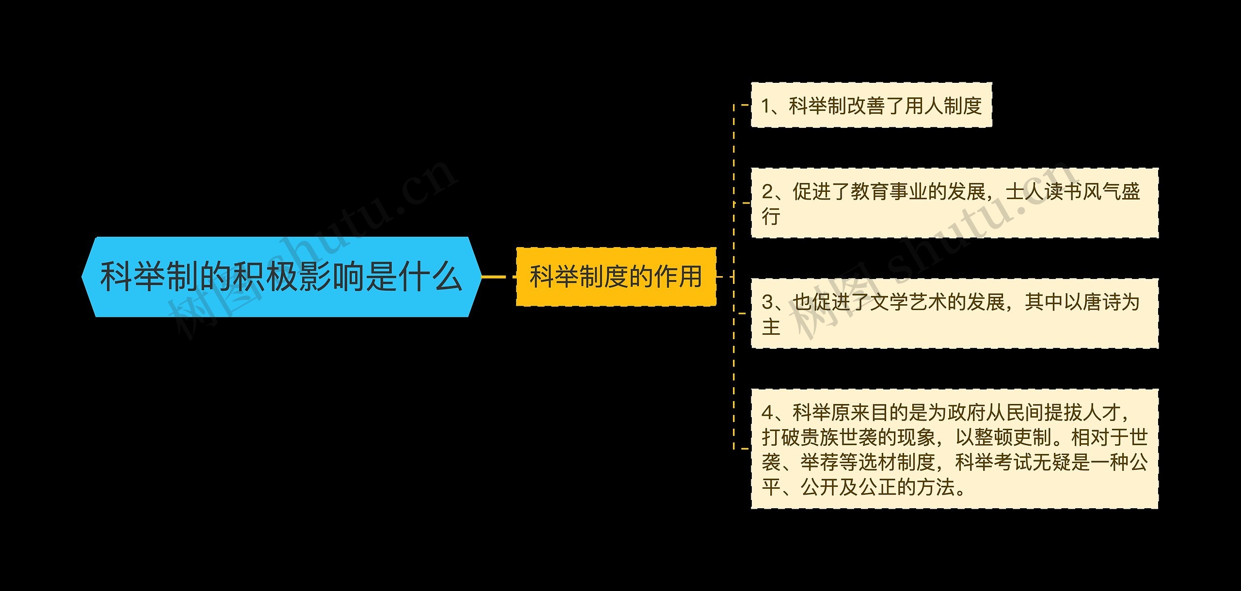 树图思维导图提供《科举制的积极影响是什么》在线思维导图免费制作,点击“编辑”按钮,可对《科举制的积极影响是什么》进行在线思维导图编辑,本思维导图属于思维导图模板主题,文件编号是:eced7338f031bebae9cae55515e73f01