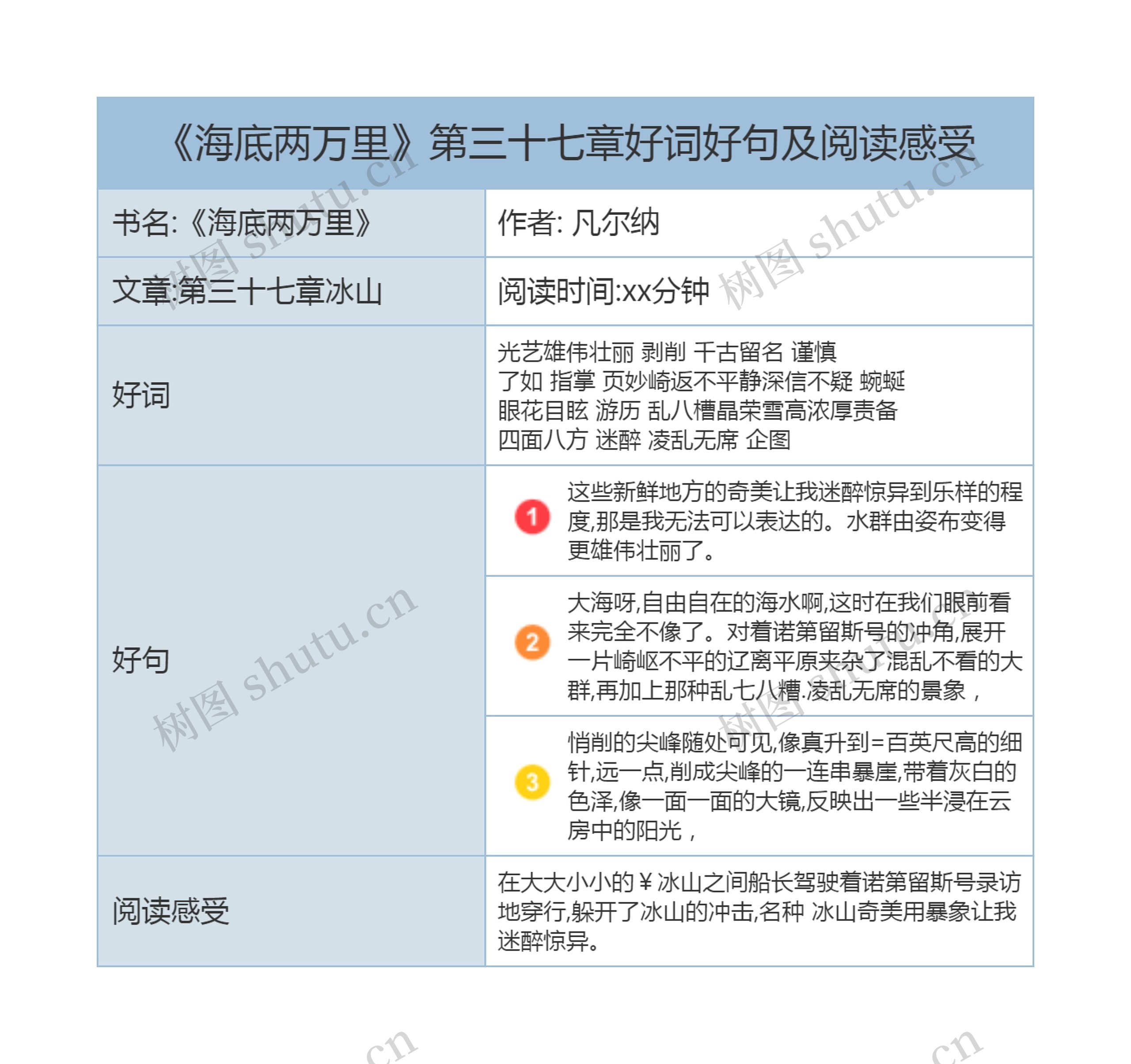 《海底两万里》第三十七章好词好句及阅读感受的内容