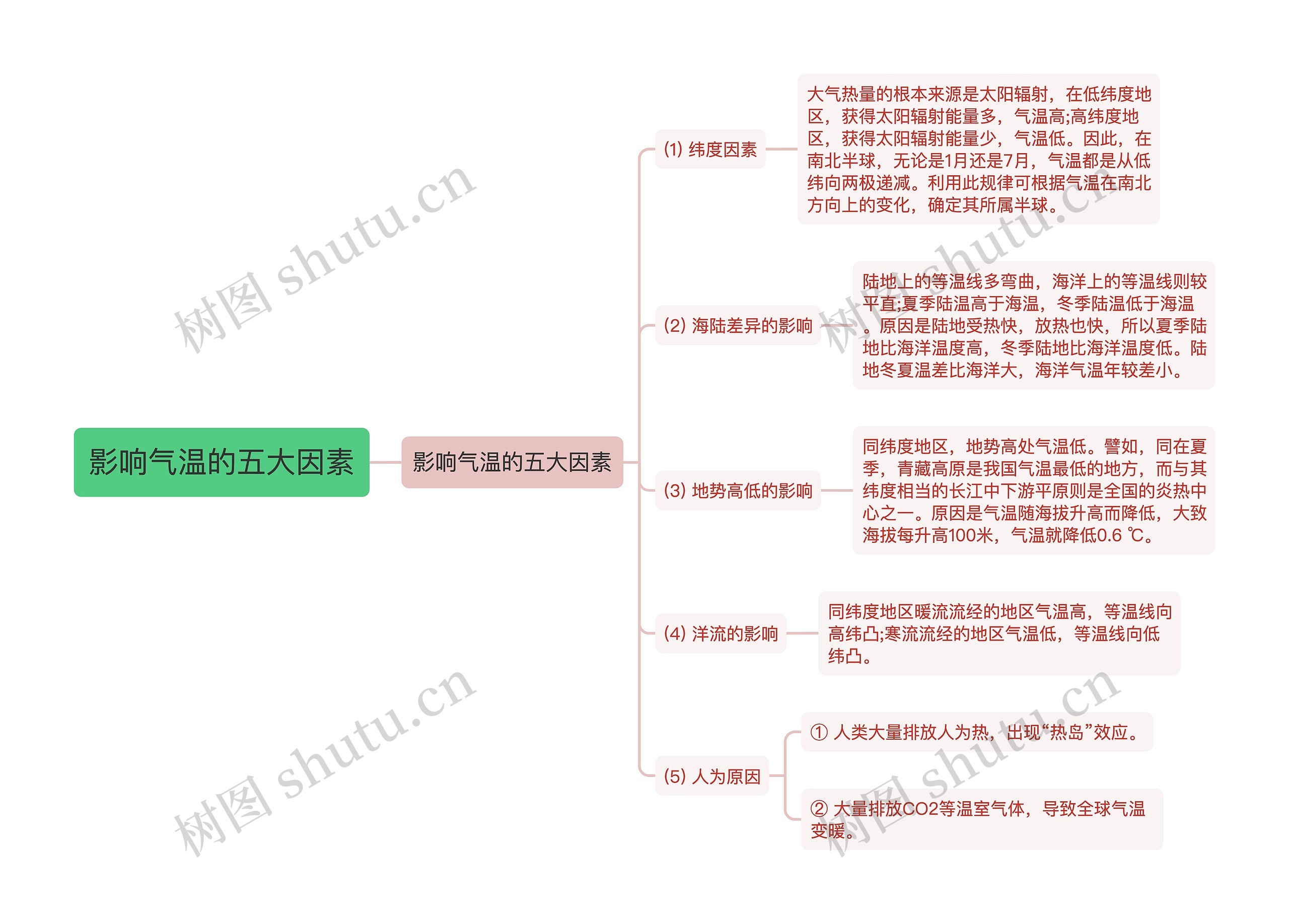 树图思维导图提供《影响气温的五大因素》在线思维导图免费制作,点击“编辑”按钮,可对《影响气温的五大因素》进行在线思维导图编辑,本思维导图属于思维导图模板主题,文件编号是:7d8d86da5384539ec8a7075cd39a131d