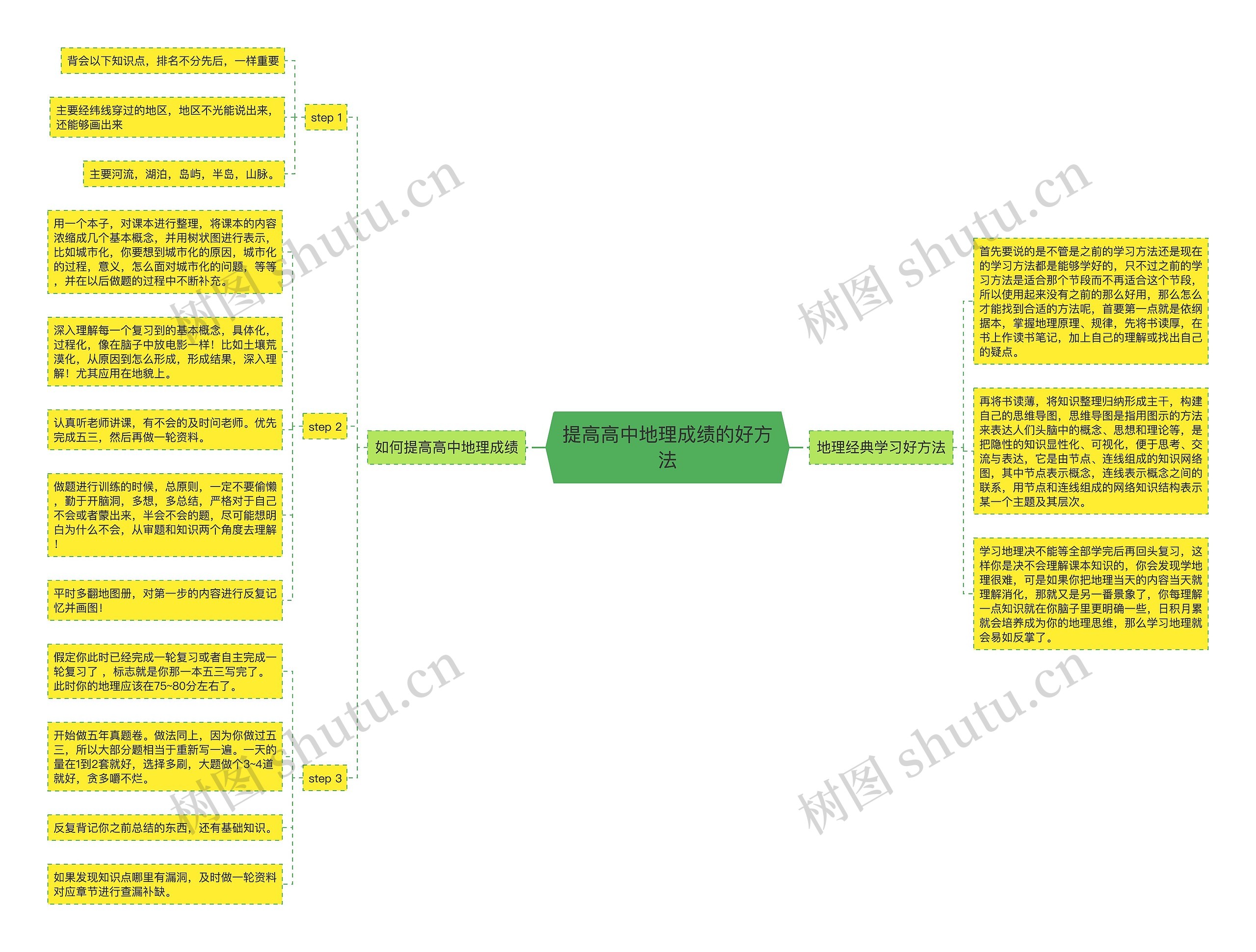 树图思维导图提供《提高高中地理成绩的好方法》在线思维导图免费制作,点击“编辑”按钮,可对《提高高中地理成绩的好方法》进行在线思维导图编辑,本思维导图属于思维导图模板主题,文件编号是:c12f90677c8d66b6d008539c0bc392c7