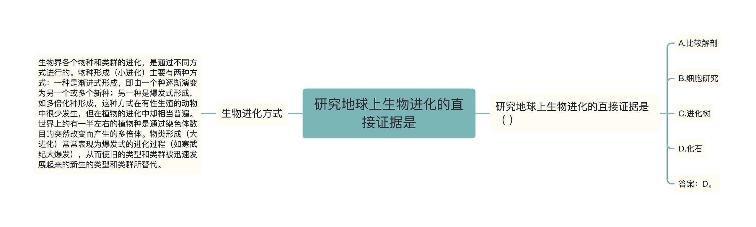 树图思维导图提供《研究地球上生物进化的直接证据是》在线思维导图免费制作,点击“编辑”按钮,可对《研究地球上生物进化的直接证据是》进行在线思维导图编辑,本思维导图属于思维导图模板主题,文件编号是:fab72d95f9b80b707dbfefd5a1cbe46d