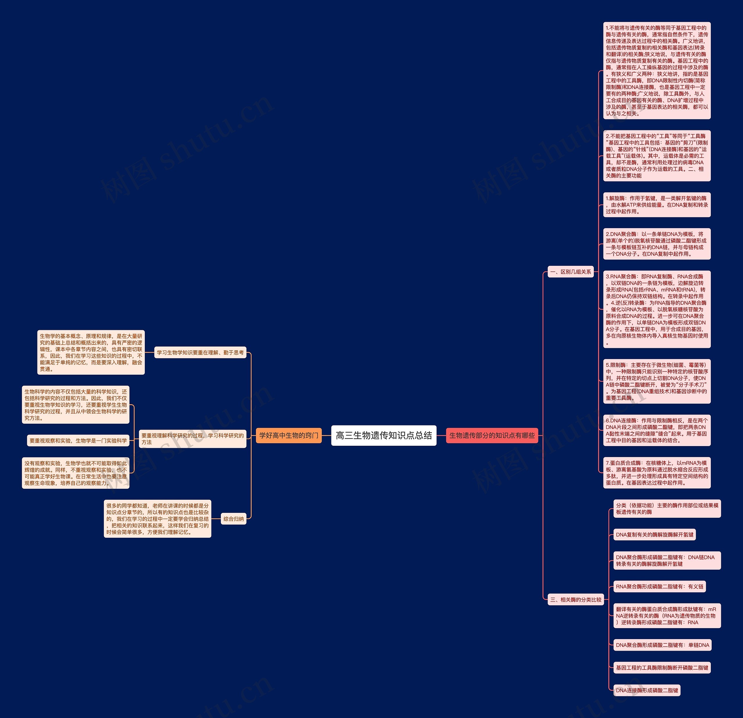 1.不能将与遗传有关的酶等同于基因工程中的酶与遗传有关的酶,通常指自然条件下,遗传信息传递及表达过程中的相关酶。广义地讲,包括遗传物质复制的相关酶和基因表达(转录和翻译)的相关酶;狭义地说,与遗传有关的酶仅指与遗传物质复制有关的酶。基因工程中的酶,通常指在人工操纵基因的过程中涉及的酶。有狭义和广义两种:狭义地讲,指的是基因工程中的工具酶,即DNA限制性内切酶(简称限制酶)和DNA连接酶,也是基因工程中一定要有的两种酶;广义地说,除工具酶外,与人工合成目的基因有关的酶、DNA扩增过程中涉及的酶,甚至于基因表达的相关酶,都可以认为与之相关。