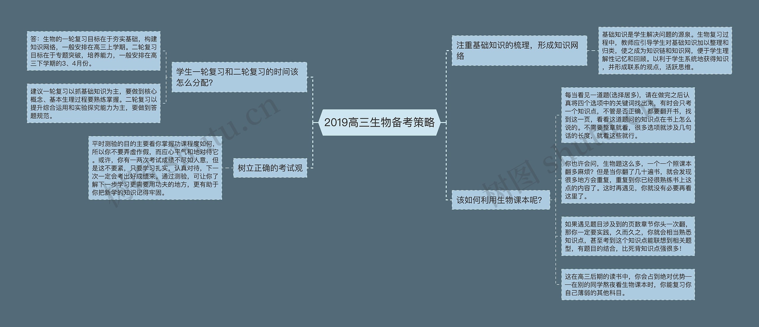 树图思维导图提供《2019高三生物备考策略》在线思维导图免费制作,点击“编辑”按钮,可对《2019高三生物备考策略》进行在线思维导图编辑,本思维导图属于思维导图模板主题,文件编号是:5db61a9159b57c8dc897e601c235f7cd