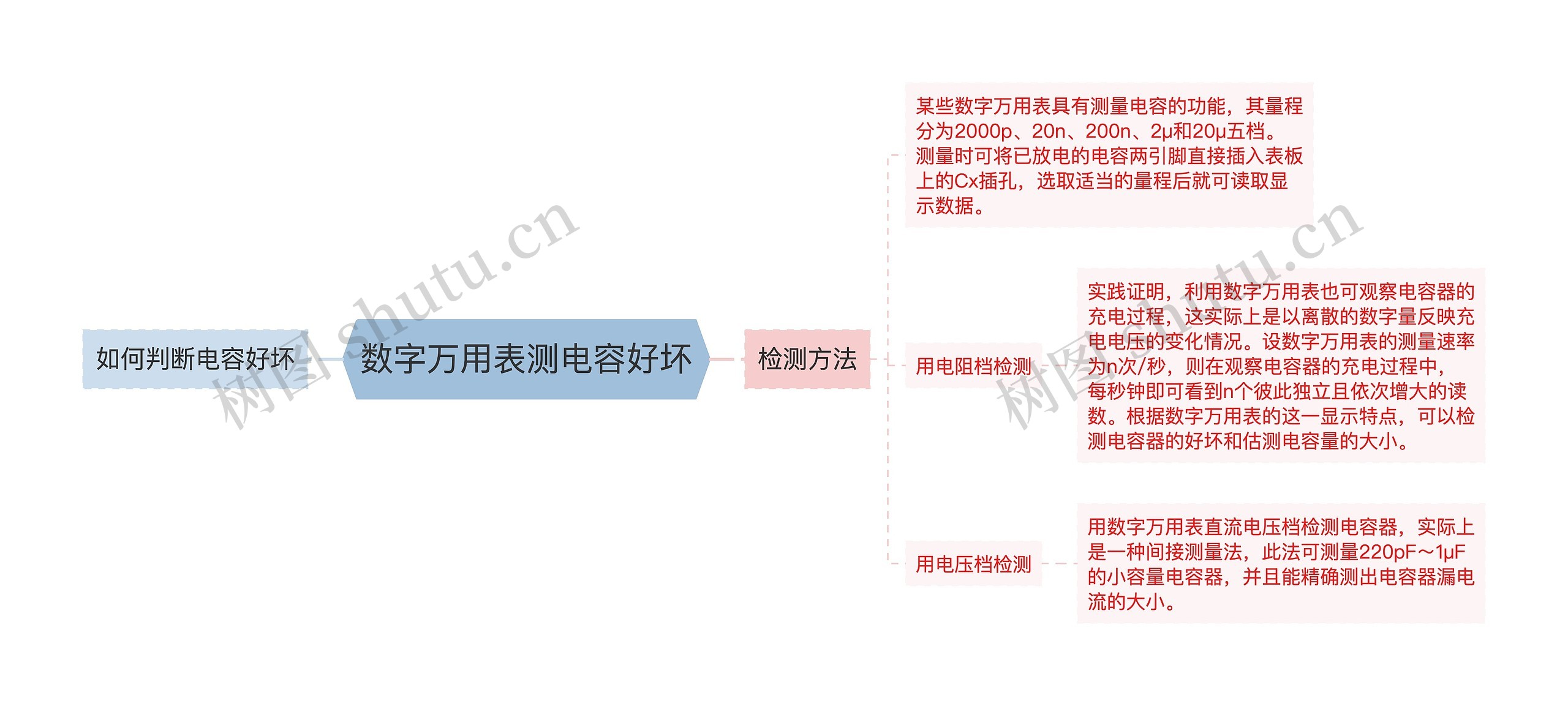 树图思维导图提供《数字万用表测电容好坏》在线思维导图免费制作,点击“编辑”按钮,可对《数字万用表测电容好坏》进行在线思维导图编辑,本思维导图属于思维导图模板主题,文件编号是:d5c294404c724fb6f0b8b98c9f680c4d