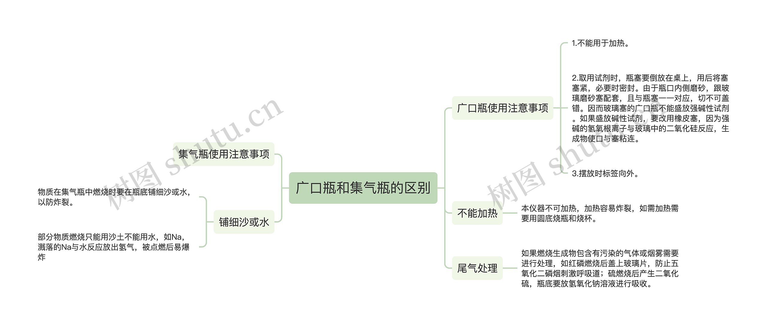 树图思维导图提供《广口瓶和集气瓶的区别》在线思维导图免费制作,点击“编辑”按钮,可对《广口瓶和集气瓶的区别》进行在线思维导图编辑,本思维导图属于思维导图模板主题,文件编号是:f8f091f80b7501df0ae708825eeaf456