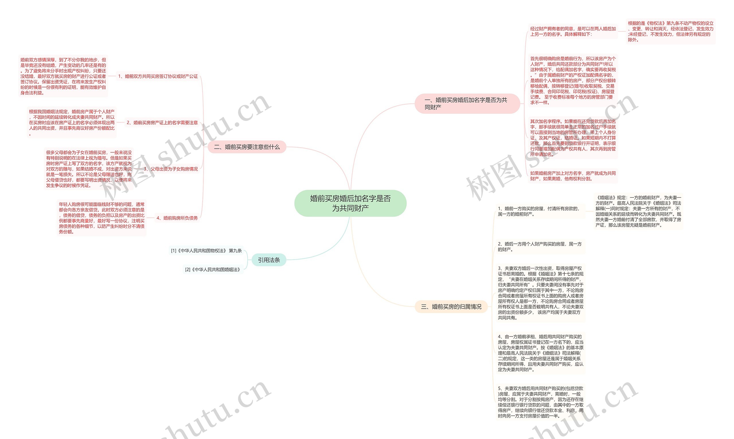 我们知道,许多男女双方在结婚之后,对于房屋的归属问题可能不是很清楚,特别是一些在婚前买的房,想要在婚后加上另一伴的名字。因此,想必大家想知道关于婚前买房婚后加名字是否为共同财产?接下来由树图网小编详细为您介绍!