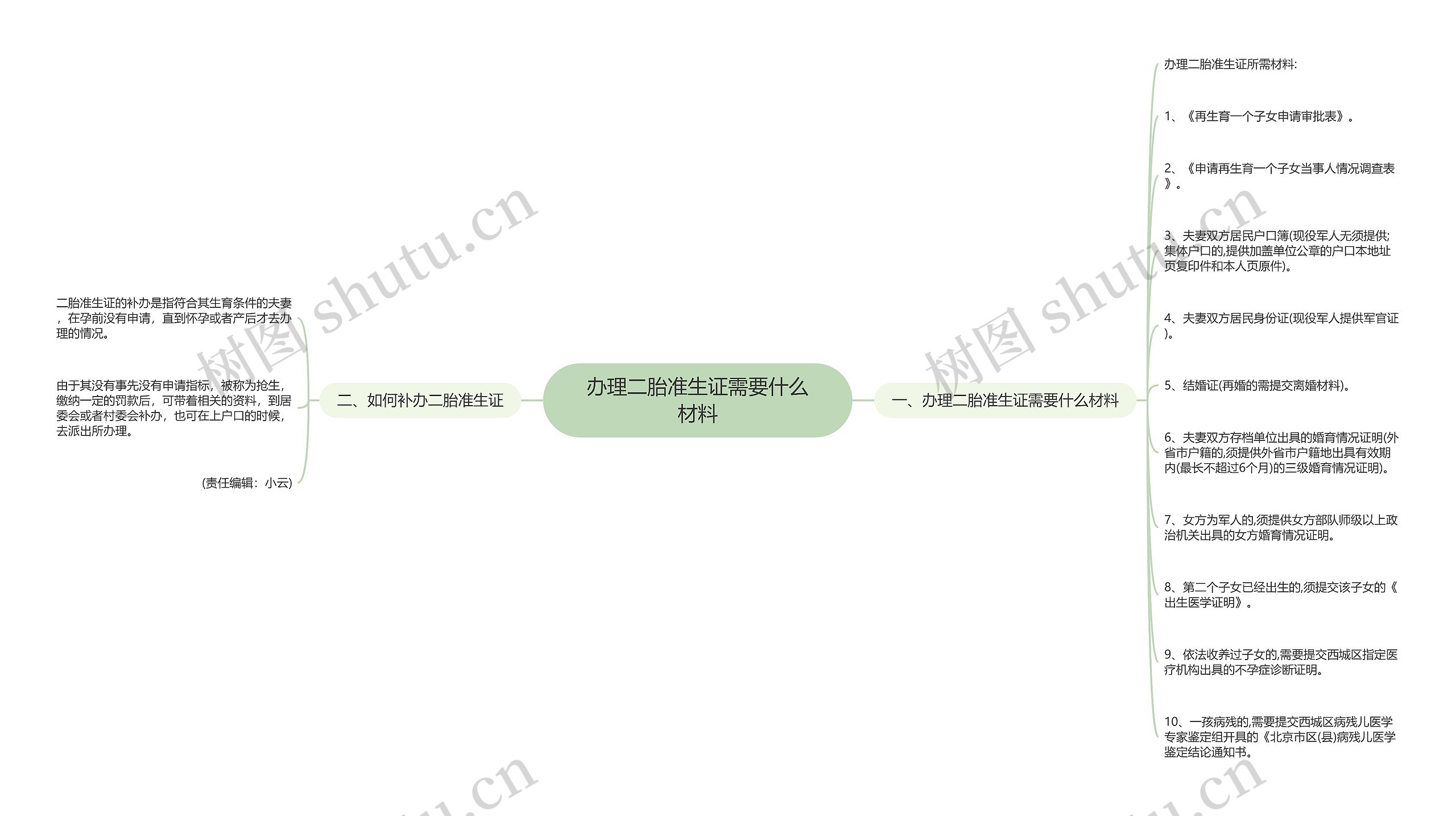树图思维导图提供《办理二胎准生证需要什么材料》在线思维导图免费制作,点击“编辑”按钮,可对《办理二胎准生证需要什么材料》进行在线思维导图编辑,本思维导图属于思维导图模板主题,文件编号是:03e074039174b5896dcae6ea3a317006