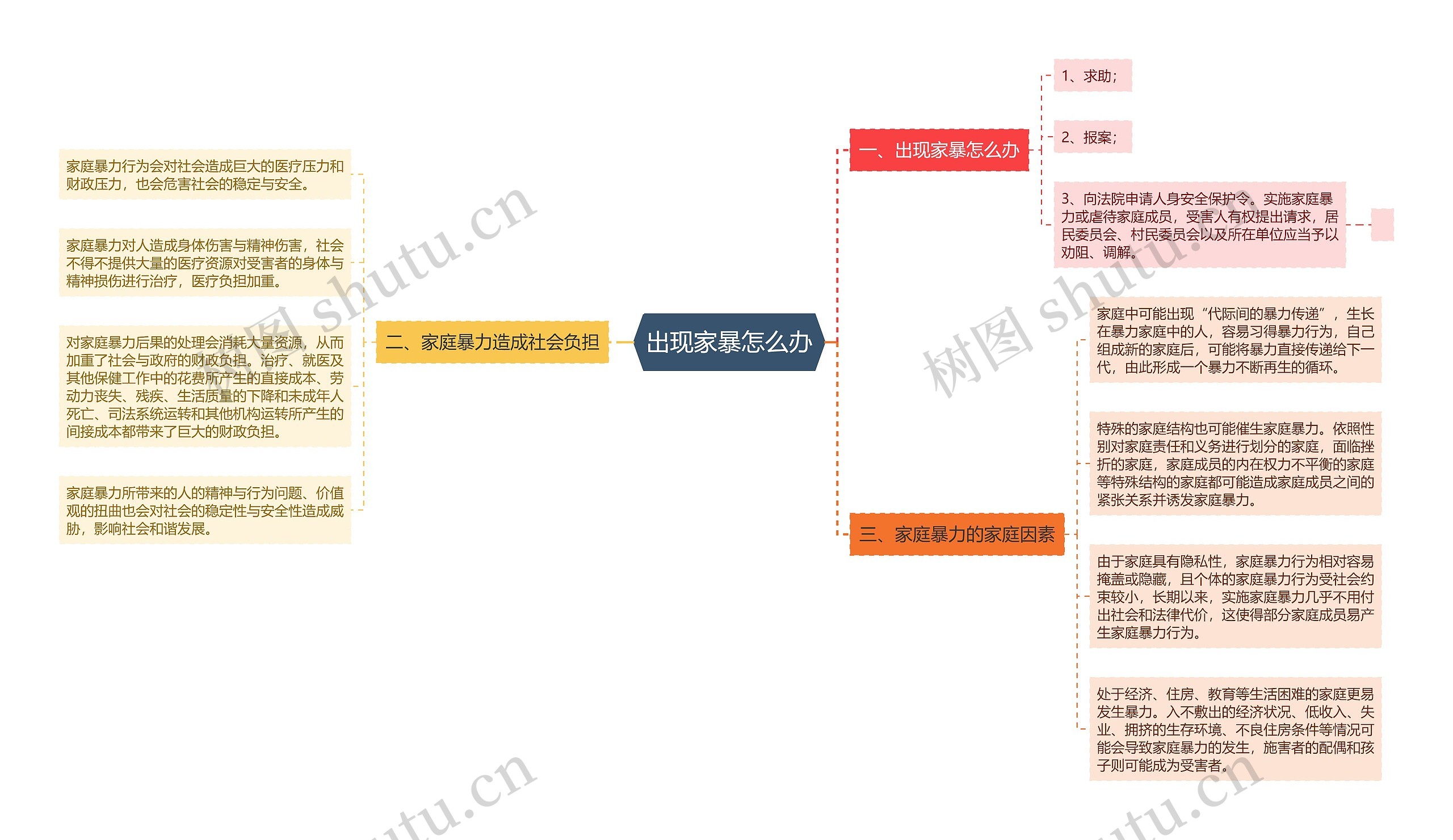 树图思维导图提供《出现家暴怎么办》在线思维导图免费制作,点击“编辑”按钮,可对《出现家暴怎么办》进行在线思维导图编辑,本思维导图属于思维导图模板主题,文件编号是:3d5daf1cd2e4d30289c6eb7d01ccaac9