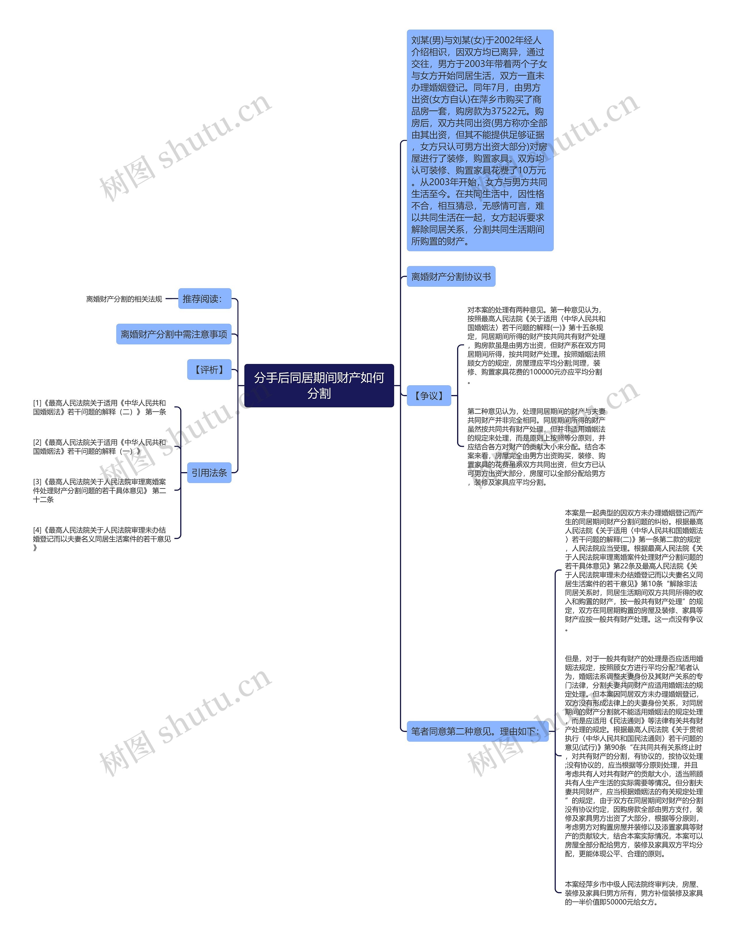 本案是一起典型的因双方未办理婚姻登记而产生的同居期间财产分割问题的纠纷。根据最高人民法院《关于适用〈中华人民共和国婚姻法〉若干问题的解释(二)》第一条第二款的规定,人民法院应当受理。根据最高人民法院《关于人民法院审理离婚案件处理财产分割问题的若干具体意见》第22条及最高人民法院《关于人民法院审理未办结婚登记而以夫妻名义同居生活案件的若干意见》第10条“解除非法同居关系时,同居生活期间双方共同所得的收入和购置的财产,按一般共有财产处理”的规定,双方在同居期购置的房屋及装修、家具等财产应按一般共有财产处理。这一点没有争议。