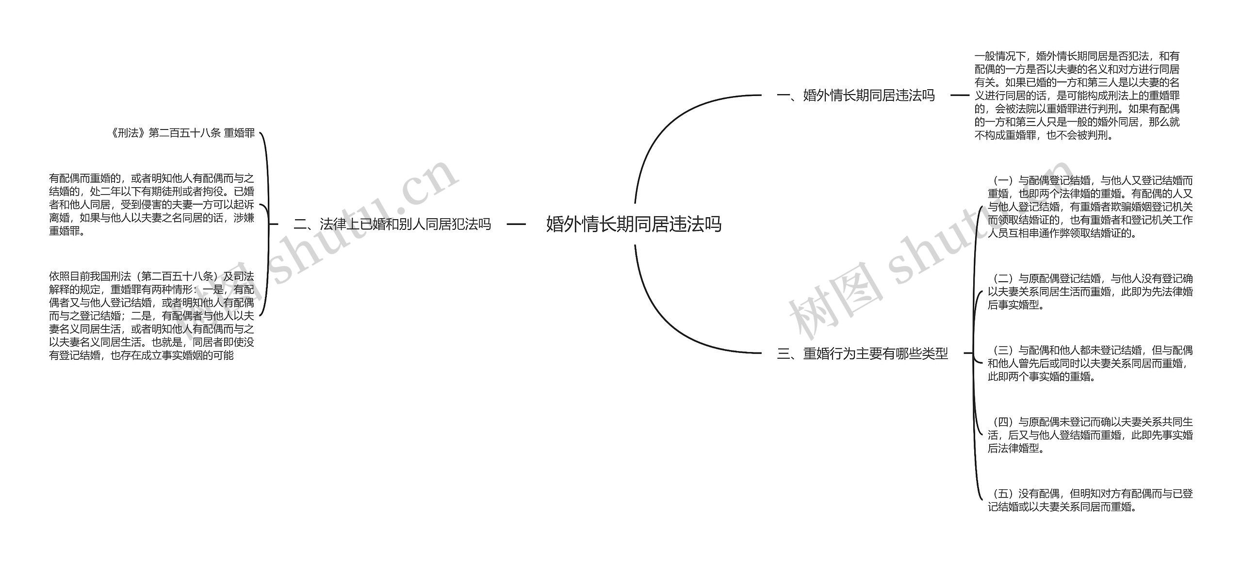 树图思维导图提供《婚外情长期同居违法吗》在线思维导图免费制作,点击“编辑”按钮,可对《婚外情长期同居违法吗》进行在线思维导图编辑,本思维导图属于思维导图模板主题,文件编号是:e7d8d0b15df030107f55b852dc3fa949