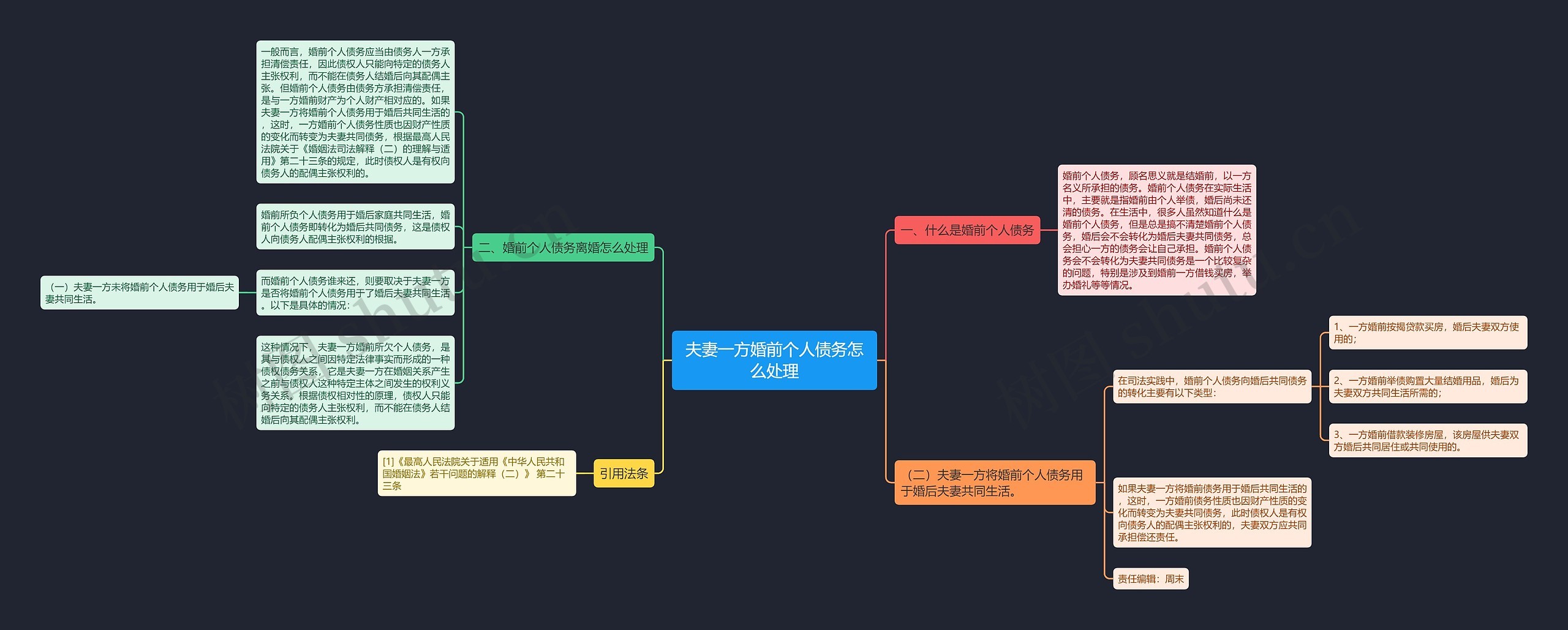 (一)夫妻一方未将婚前个人债务用于婚后夫妻共同生活。