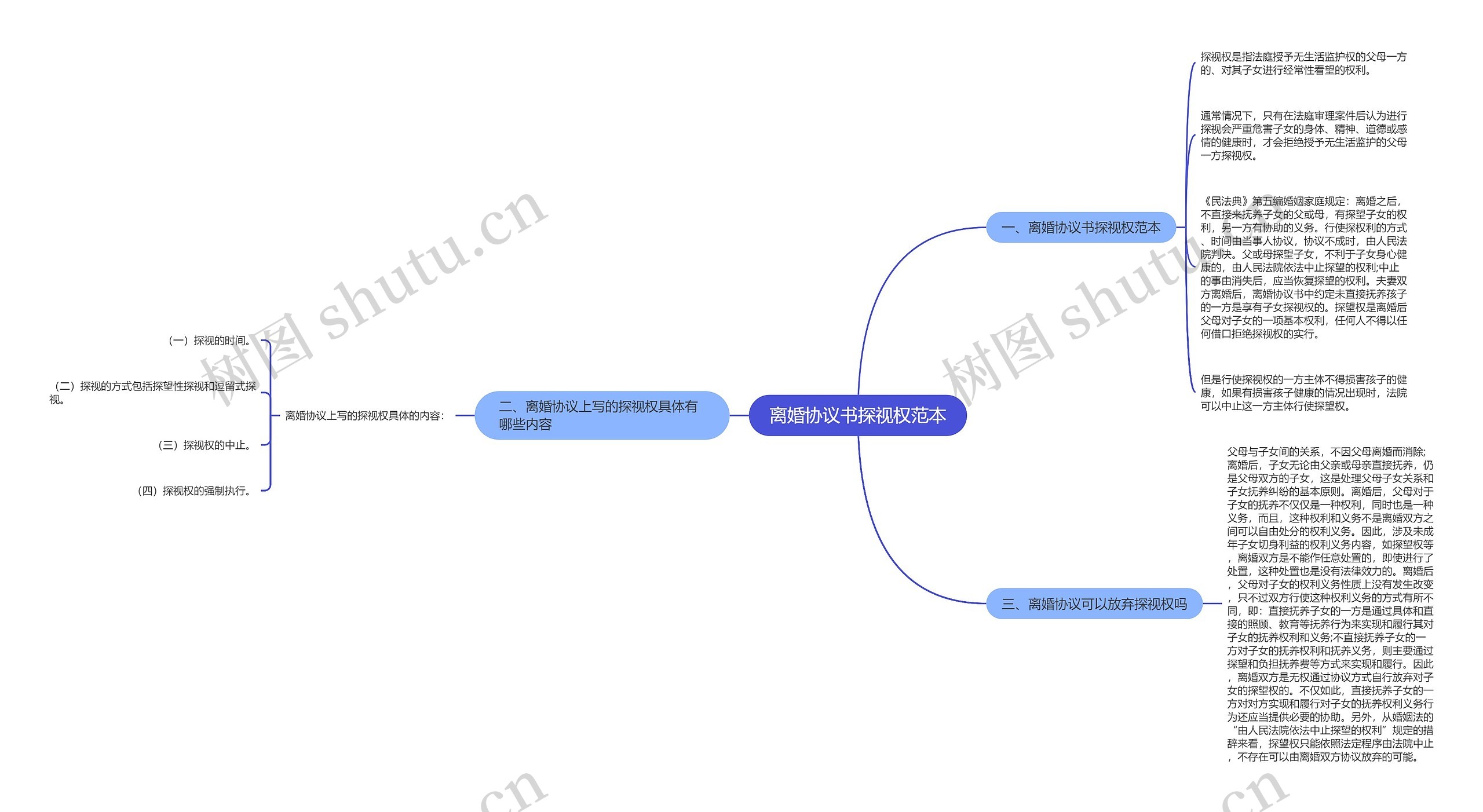 树图思维导图提供《离婚协议书探视权范本》在线思维导图免费制作,点击“编辑”按钮,可对《离婚协议书探视权范本》进行在线思维导图编辑,本思维导图属于思维导图模板主题,文件编号是:5edf3d481c817389aa68b630fb91cbbd