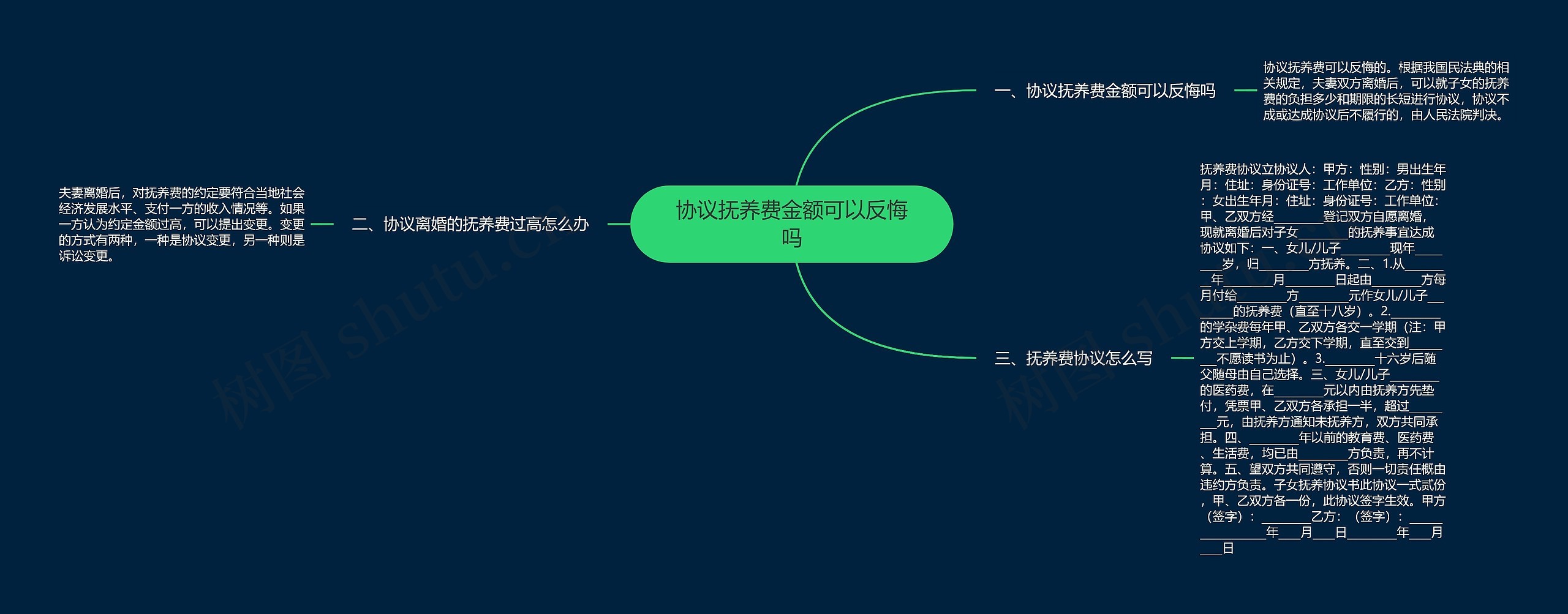 树图思维导图提供《协议抚养费金额可以反悔吗》在线思维导图免费制作,点击“编辑”按钮,可对《协议抚养费金额可以反悔吗》进行在线思维导图编辑,本思维导图属于思维导图模板主题,文件编号是:435319a6889b333bf539dee91252a768