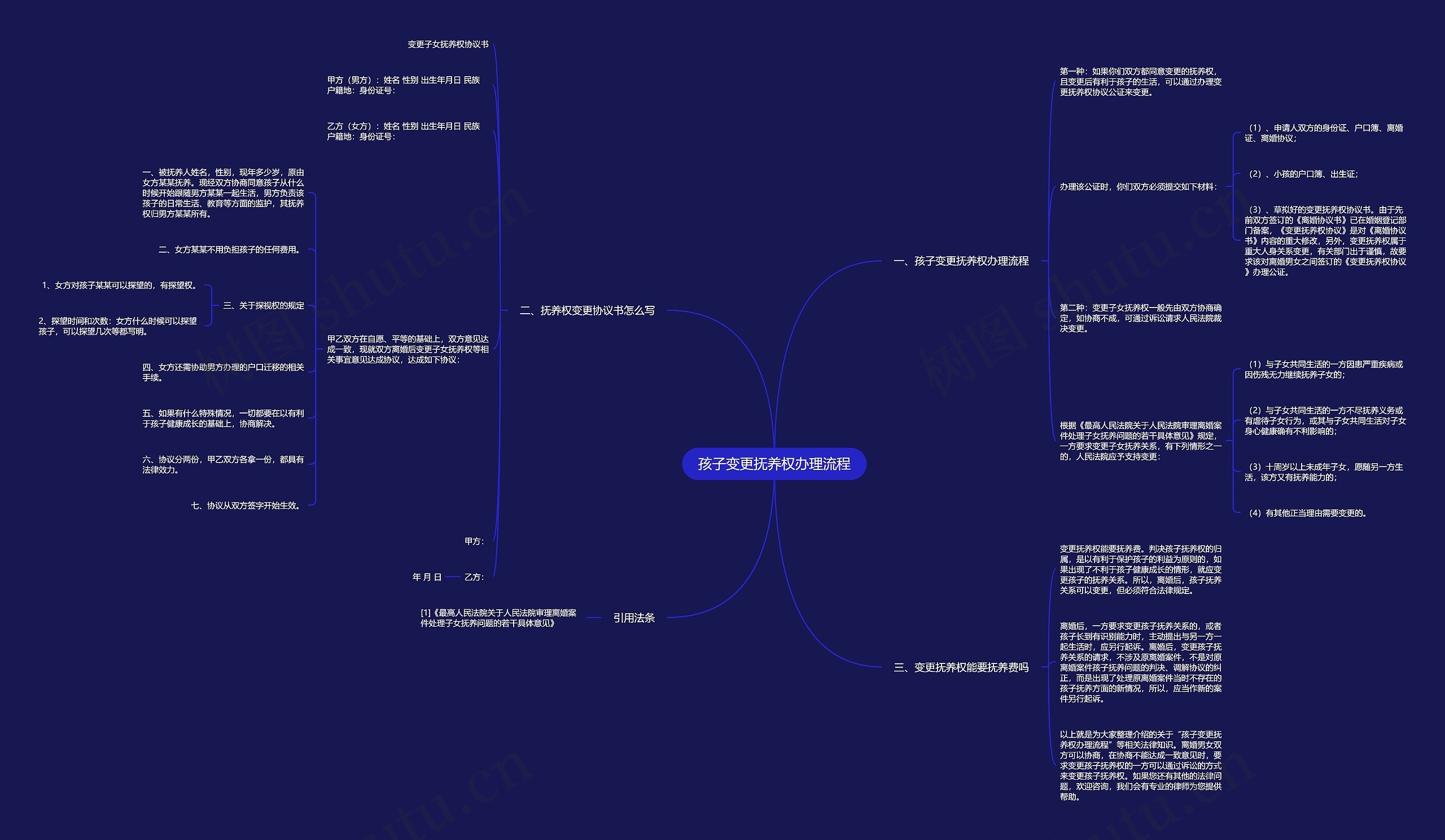 树图思维导图提供《孩子变更抚养权办理流程》在线思维导图免费制作,点击“编辑”按钮,可对《孩子变更抚养权办理流程》进行在线思维导图编辑,本思维导图属于思维导图模板主题,文件编号是:1e6bc0623b4c1adadb496480a6784cd4
