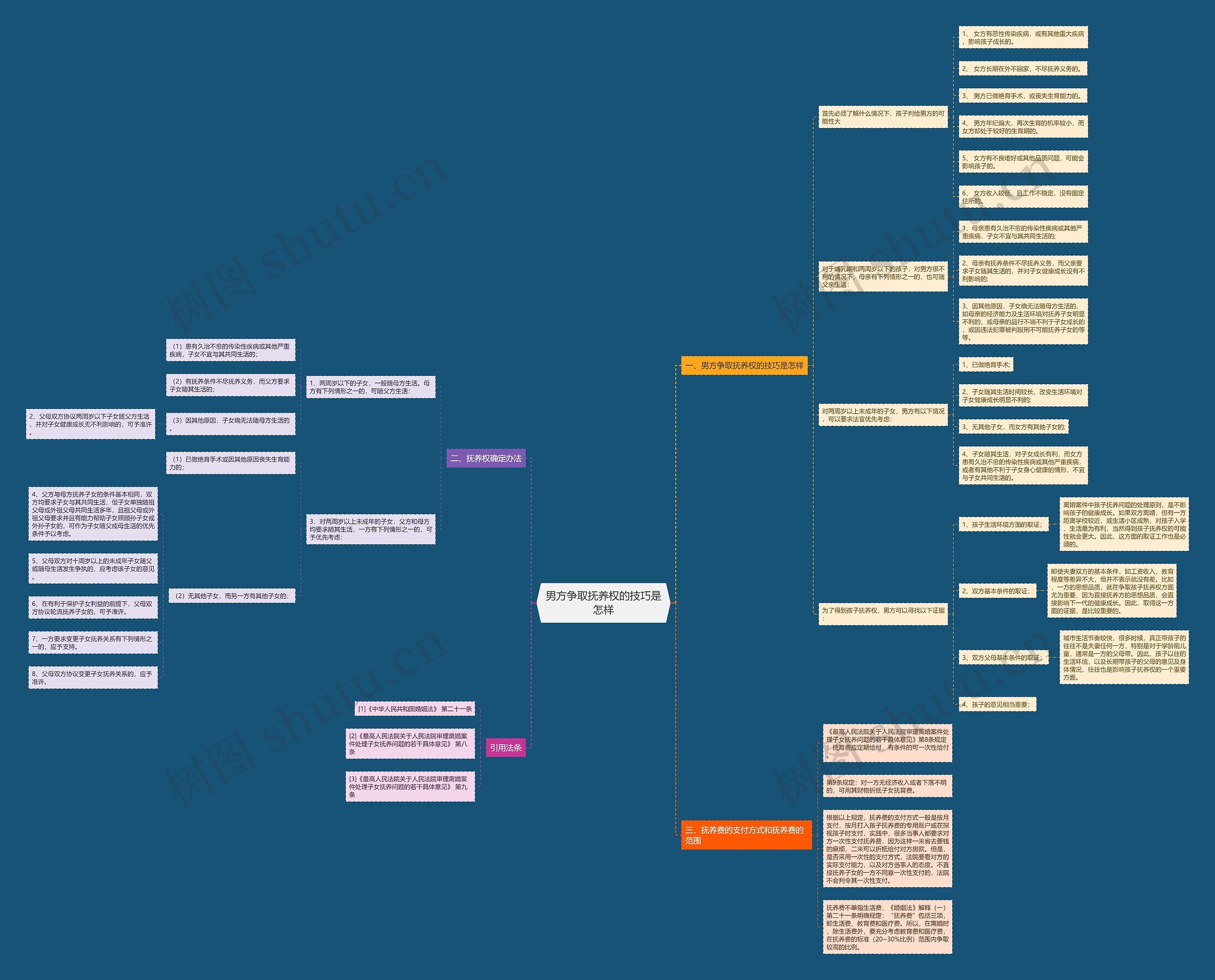 树图思维导图提供《男方争取抚养权的技巧是怎样》在线思维导图免费制作,点击“编辑”按钮,可对《男方争取抚养权的技巧是怎样》进行在线思维导图编辑,本思维导图属于思维导图模板主题,文件编号是:cf7d883a6c9bd97056972f847d2c3c66
