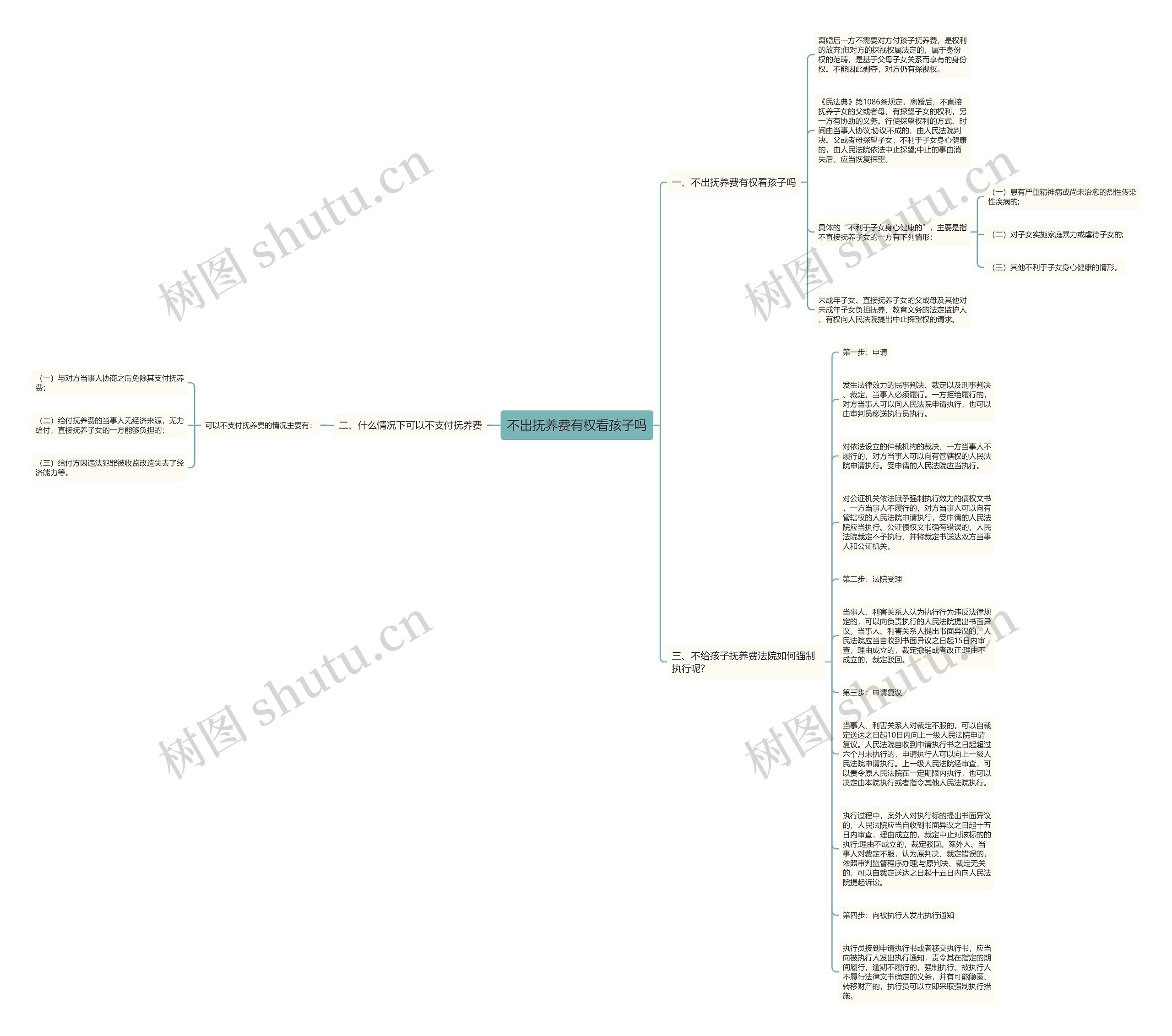 树图思维导图提供《不出抚养费有权看孩子吗》在线思维导图免费制作,点击“编辑”按钮,可对《不出抚养费有权看孩子吗》进行在线思维导图编辑,本思维导图属于思维导图模板主题,文件编号是:c378ed8175bd42c53739fd217a3a31d3